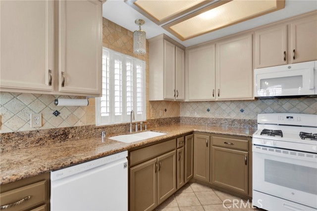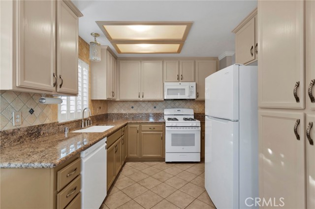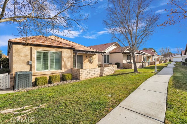Welcome to this adorable, updated 2-bedroom 2-bathroom home in the highly desirable gated retirement community of Jess Ranch. Situated on a prime lot overlooking the greenbelt walkway, you'll enjoy serene views of mature trees and lush, park-like landscaping right outside your door. Inside, this home has been tastefully upgraded, featuring a modern kitchen updated within the last 2 years, complete with granite countertops, a travertine tile backsplash, white appliances, and ample cabinetry. Tile flooring throughout ensures easy maintenance and a clean, polished look. The split floorplan offers ideal privacy and flexibility, with spacious bedrooms and an indoor laundry room with extra storage. Additional highlights include white plantation shutters and crown molding, an attached two-car garage, and a small patio front courtyard. Enjoy all the amenities Jess Ranch has to offer, including the newly remodeled clubhouse, sparkling pool, and inviting outdoor areas. This community is located just minutes from major shopping, dining, hospitals, and entertainment, offering the best of convenience and lifestyle. Come take a tour and see everything this vibrant 55+ community and charming home have to offer!