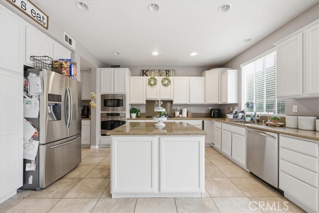 Welcome to Heather Ridge Court, ideally located in one of Canyon Hills' most desirable neighborhoods. This inviting home offers excellent curb appeal and breathtaking, unobstructed views of a protected nature preserve. A grand entry welcomes you into a spacious living room with vaulted ceilings and abundant natural light. Upgraded 20-inch tile flooring flows throughout the main level, leading past a generously sized downstairs bedroom and full bath, ideal for guests or multi-generational living. The formal dining room offers ample space for hosting large gatherings and special occasions. Designed for entertaining, the kitchen features a large granite island, upgraded cabinetry, stainless steel appliances, a breakfast nook, and a convenient butler's pantry. The oversized family room with fireplace provides a comfortable space for relaxing evenings and movie nights. Upstairs, the expansive primary suite offers sweeping views of the rolling hills and backyard, creating a peaceful private retreat. Three additional well-sized secondary bedrooms provide plenty of space for family, guests, or a home office. Step outside to a large sized backyard where you can envision summer BBQs, family gatherings, and gardening, all with no rear neighbors and tranquil dining, freeways, golf courses, and hiking trails just minutes away.