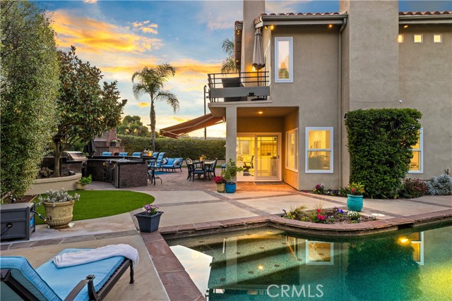 From the resort-style pool to the ultimate backyard experience 21 Bernay is designed for unforgettable gatherings and everyday escapes! This thoughtfully remodeled home sits on a rare oversized, end of cul de sac lot and features a resort-style pool designed for elevated living and entertaining, in the highly sought-after Marina Hills community! Throughout the home you'll find MILGARD WINDOWS, PEX REPIPE, OWNED SOLAR, DUAL NEWER HVAC/WATER FILTRATION systems, and no carpet except the staircase plus more exceptional details. Set on a private expansive 13,500 sq ft lot, this updated 4-bedroom home plus bonus room offers 3.5 beautifully updated bathrooms and adds an exceptional blend of luxury, comfort, and meticulous design throughout. Inside, the chef-inspired kitchen is a showstopper with elevated custom cabinetry, extended island with seating and extra storage/sink with disposal, under-cabinet lighting, an appliance garage, professional SS Dacor appliances with dual ovens, and stunning Calacatta quartz countertops — details that elevate both form and function. A unique bar thoughtfully positioned between the living and family rooms makes entertaining effortless. The reimagined primary suite boasts soaring ceilings, a luxurious enlarged shower, added custom vanity, elegant chandelier, and a spacious walk-in closet with custom California Closets built ins. A highly desirable downstairs bedroom with remodeled ensuite provides ideal accommodation for guests or multigenerational living. Designed for both everyday living and unforgettable entertainment, the backyard is a true resort-style oasis featuring a saltwater sport pool, a striking stone fireplace, stone hardscape and spa, turf, and Al fresco dining under one of the two electronic awnings. A huge BBQ bar with burners, drawers, and refrigerator, all that centers the outdoor living space, creating the perfect hub for hosting family and friends. Residents of Marina Hills enjoy award-winning amenities, including a junior Olympic pool, tennis/pickleball courts, clubhouse, BBQ areas, parks, bocce ball, and more — all just minutes from Dana Point Harbor/Laguna Beach, coastal trails for biking/hiking including Salt Creek Trail that take you to beaches, nearby dining and shopping. This is a rare opportunity to own a remarkable home on one of Marina Hills' most coveted lots.
