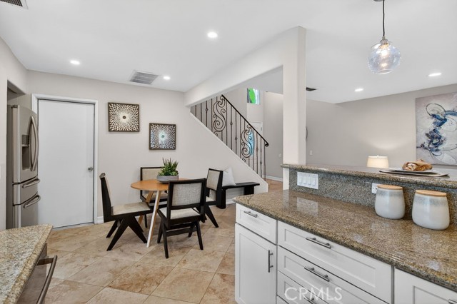 Located just one street from Dana Point, this beautifully upgraded mountain view home offers an exceptional opportunity to live close to the beach at a compelling price point. Approximately 1.5 miles to Dana Point Harbor, the sand and surf, and just 2.2 miles to historic downtown San Juan Capistrano, this location delivers the best of coastal living with unmatched convenience. Enjoy quick access to the river trail leading directly to Doheny State Beach, making biking, walking, and outdoor living part of everyday life. The home is also within walking distance to local schools and offers easy freeway access, ideal for commuters. Perfectly positioned in an interior location, the home provides privacy and a peaceful setting away from busy roads. This three bedroom home features numerous upgrades throughout including dual pane windows, stone and wood flooring throughout with no carpet, granite kitchen counters, an eat at granite breakfast bar, white shaker cabinets, stainless steel appliances, and recessed lighting. The functional downstairs floorplan offers a seamless flow with the kitchen open to the family room, ideal for entertaining or relaxed daily living. A cozy fireplace anchors the living room, framed by natural light streaming through windows that overlook the backyard. The downstairs powder room is tastefully designed with shiplap walls and offers the potential to expand by utilizing the adjacent oversized garage space to add a shower if desired. Upstairs, the bedrooms are airy and bright with crown molding, shutters, recessed lighting, and ceiling fans. The rear bedroom enjoys peaceful mountain views. The primary bathroom features a stone encased shower extending to the ceiling and walls, a large soaking tub, a new toilet, and a wood vanity with a stone countertop. The property includes a full sized driveway and an oversized two car attached garage with ample storage. The oversized backyard is a true retreat with mountain views, a large grassy area, cafe lights over the seating area with a firepit, and a covered patio directly off the kitchen for easy al fresco dining. Relax in the always hot above ground jacuzzi or inferred sauna at the end of the day. Additional features include a newer furnace and efficient air conditioning. This prime coastal location near Dana Point beaches, Doheny, the harbor, shopping, dining, schools, and freeway access offers an incredible lifestyle and value for buyers seeking coastal living without the coastal price tag.