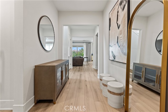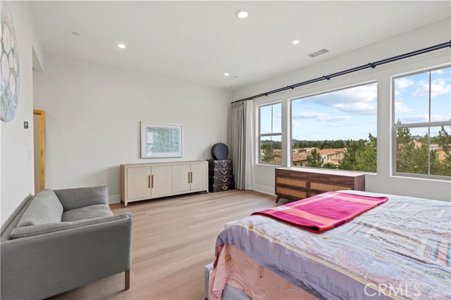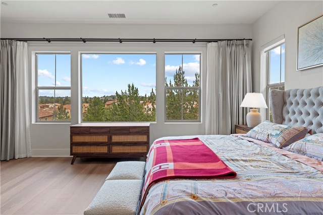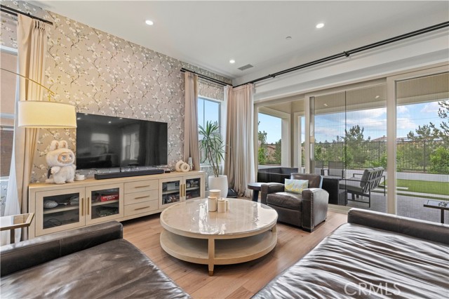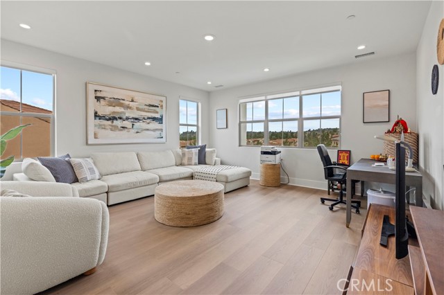 Located in the highly desirable guard gated Grove community of Orchard Hills in Irvine, 63 Longchamp is an upgraded 4-bedroom, 3.5-bathroom residence featuring a spacious loft and a flexible office that can easily function as a fifth bedroom. Situated on a premium view lot with sweeping open-sky and mountain views, this two-story home offers exceptional natural light throughout. Ten-foot ceilings on both the main level and upstairs masterbedroom create an airy, expansive atmosphere that enhances the sense of space and comfort. The thoughtfully designed floor plan supports modern living with flexible areas for work, study, and entertaining. Brand-new flooring has been installed throughout the entire home, providing a clean and cohesive aesthetic. The backyard is designed for both relaxation and gathering. A built-in BBQ anchors the outdoor space, while mature orange trees, dragon fruit, a fragrant osmanthus tree, and a striking row of bird of paradise add character and charm. Beautiful artificial turf offers year-round greenery with minimal maintenance. Residents of Grove enjoy resort-style amenities and tree-lined surroundings, all within the award-winning Irvine Unified School District and zoned to a highly rated 10/10 high school. With panoramic views, high ceilings, abundant natural light, and an exceptional community setting, this home offers an ideal blend of comfort, elegance, and lifestyle in one of Irvine's most sought-after neighborhoods.