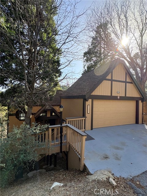 Lake Rights and just minutes from the water with peek a boo lake views, this custom Arrowhead Woods home offers the perfect blend of mountain charm, space, and convenience — complete with a two-car garage, additional driveway parking, and a large workshop or storage area below the garage. Set on a generous lot, this home delivers a warm, cozy cabin feel while offering plenty of room to spread out with 4 bedrooms and 3 bathrooms. Inside, you'll appreciate the spacious layout designed for comfortable everyday living or weekend getaways. Recent improvements include a newer roof (approximately 10 years old), recent exterior paint, and a recently reinforced deck, adding peace of mind and long-term value. Two furnace units provide efficient heating and year-round comfort. The inviting interior is being sold furnished, making this an easy turnkey opportunity as a full-time residence, vacation retreat, or investment property. Enjoy relaxing on the deck, taking in the mountain air, and being just moments from Lake Arrowhead's recreation, dining, and village amenities. A rare combination of lake rights, functional space, and classic cabin character in a highly desirable location.