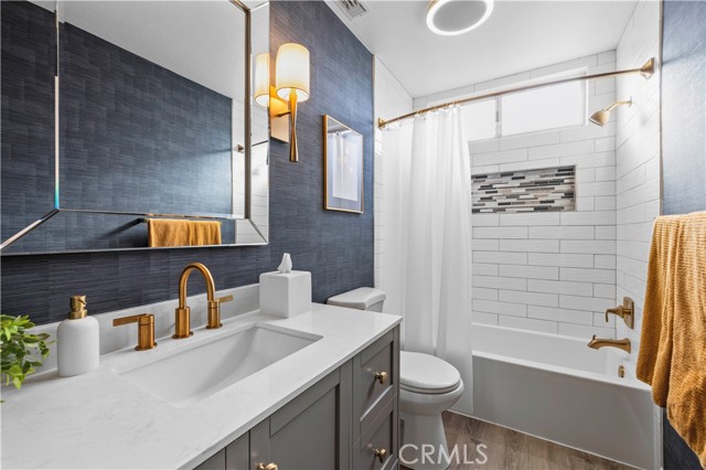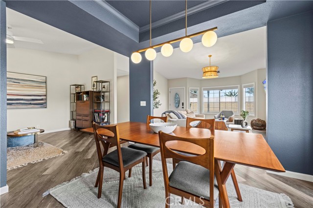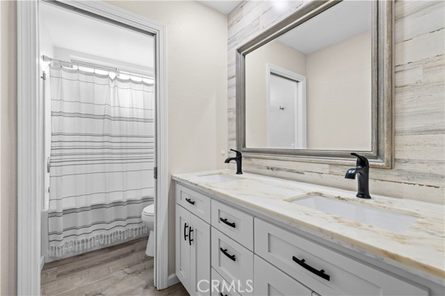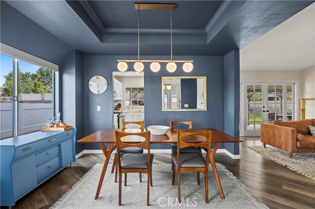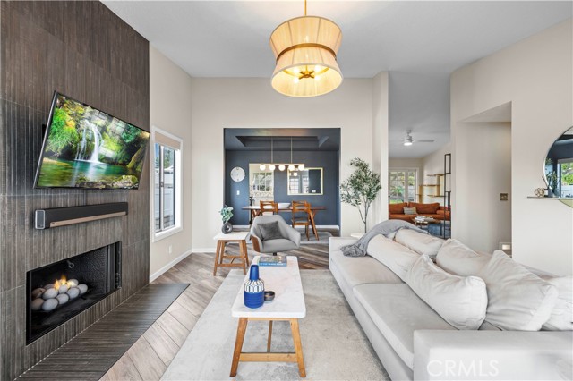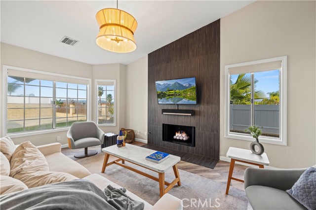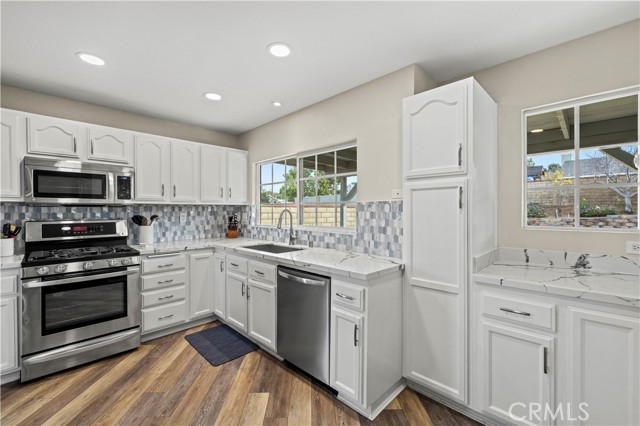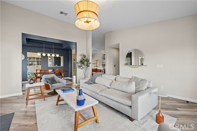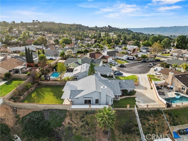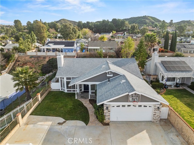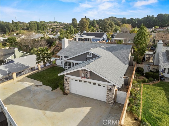 Welcome to 22553 Pearson Court, a stunning single-family residence ideally situated at the end of a small cul-de-sac in the desirable Saugus Mountainview West community. This property boasts a fantastic flag lot featuring a long driveway, providing ample space for cars, trucks, and possibly RV and trailer parking, making it perfect for adventurous owners. Step inside and experience contemporary living with modern updates throughout the home. The stylish living room is anchored by an elegant fireplace framed by floor to ceiling tiles, new light fixtures, and luxurious laminate flooring that seamlessly flows into the adjoining spaces. The bathrooms have also been tastefully renovated, offering a fresh, modern feel. The heart of the home, the kitchen, impresses with its pristine white cabinets, Calacatta Lago patterned quartz countertops, and tiled backsplash, creating a chic and functional culinary space. With extensive cabinet and counter space, this kitchen is perfect for home chefs and gatherings. With it's own dedicated dining room, enhanced with an intimate paint scheme, and adjoining sitting room, entertaining will be next level.The primary suite features pitched ceilings and a full wall of mirrored wardrobe closet space along with its very own direct access to the back yard and peaceful shade of the solid patio cover. The spacious backyard is a true highlight of this home, complete with ample room for a pool and mesmerizing sunset views — the ideal setting for the sounds of backyard bbq's or enjoying quiet evenings outside. The beautifully maintained outdoor space invites you to create lasting memories with family and friends.This property is ideally located near top-rated schools and parks, not to mention some of the most popular eateries in the Santa Clarita Valley. NO HOA & NO MELLO ROOS! 22553 Pearson Court is not just a house; it's a place to call home. Don't miss the opportunity to make this inviting space your own. Schedule a tour today and discover all the wonderful features that await you!