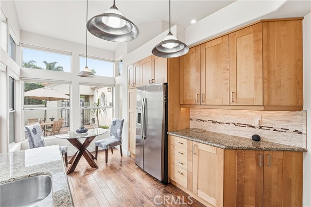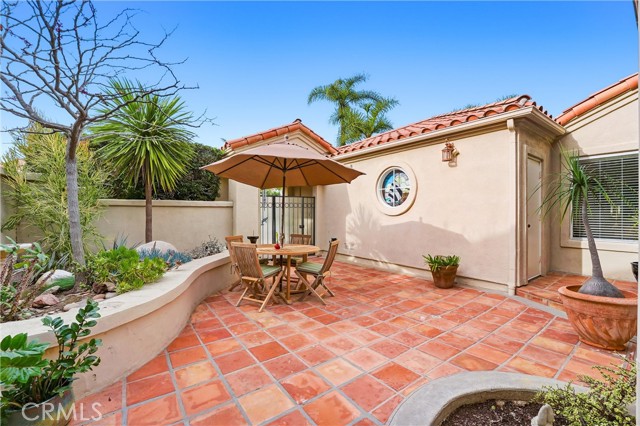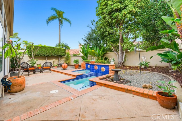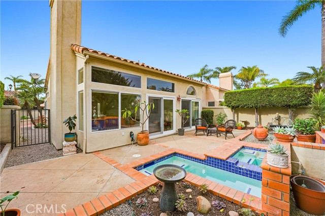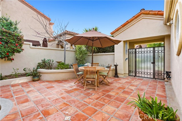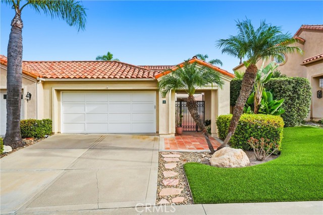 Lovely, single-story home located in the highly sought-after Marina Hills community. These single story homes rarely come on the market. This exceptional floor plan offers two bedrooms and two bathrooms. A gated courtyard entry warmly welcomes you to the home and provides a spacious, serene outdoor setting, truly an extension of the living space. Inside, high ceilings, abundant natural light, and an open-concept living and dining area create an inviting atmosphere, highlighted by a custom fireplace. Real hardwood floors enhance much of the home. The well-planned layout separates the bedrooms for added privacy, with the primary suite offering direct access to the backyard. The kitchen features granite countertops, stone backsplash, stainless steel appliances and a charming breakfast nook with views of the lush courtyard. The primary bathroom has been tastefully upgraded with a dual-sink vanity, granite counters and a luxurious, walk-in shower. A walk-in closet with custom built-ins completes the primary suite. The backyard is a tranquil retreat, featuring a spool (spa/pool combination) with ample space for outdoor seating, ideal for both relaxing and entertaining. Additional features include PEX re-piping (2024), a newer refrigerator (approximately two years old), garage built-ins providing excellent storage and low-maintenance, synthetic turf in front yard. Residents of Marina Hills enjoy resort-style amenities including an Olympic-size pool, spa, clubhouse, tennis and pickleball courts, bocce ball courts and beautifully, maintained neighborhood parks. Direct access to the Salt Creek Trail leads all the way to Salt Creek Beach, while nearby shopping, schools, restaurants, and Dana Point Harbor make this location coastal living at its finest. Low HOA and no Mello Roos. This is an exceptional opportunity to own a single-story home in a truly fabulous community.