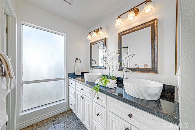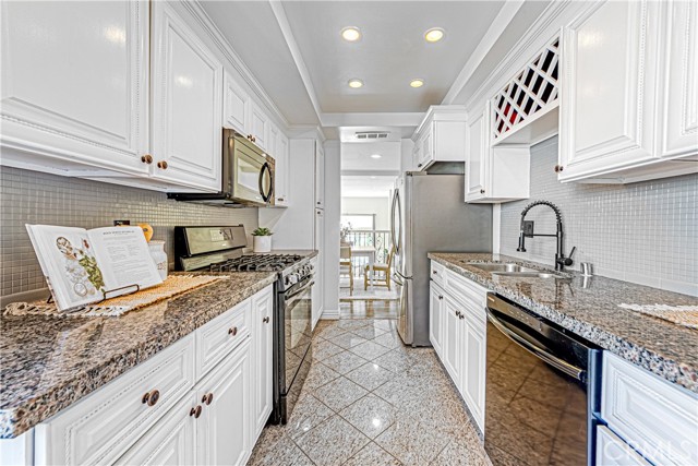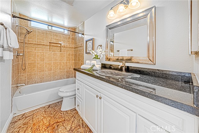 Welcome to this beautifully upgraded tri-level townhouse featuring 3 bedrooms and 3 full bathrooms, designed for comfortable and modern living. Bright and airy with vaulted ceilings, recessed lighting, updated flooring, and stylish finishes throughout, this home offers both space and elegance. Enjoy a spacious living room filled with natural light and a generous front patio perfect for relaxing or entertaining. A private kitchen balcony provides a great spot for growing herbs or enjoying fresh air with your morning coffee. The main living level includes the kitchen, dining area, and a bedroom with a walk-in closet and private bath — ideal for guests, extended living, or a home office. Upstairs, the primary suite features high ceilings, dual sinks, a walk-in closet, and a private bathroom, along with an additional bedroom and full bath. Additional highlights include an attached two-car garage with side-by-side laundry and built-in storage. The interior location offers added privacy and a quieter setting. Community amenities include a pool, spa, and beautifully maintained grounds. Conveniently located near shopping, dining, major freeways, and Cal State Fullerton, this move-in ready home offers the perfect blend of comfort, style, and location.
