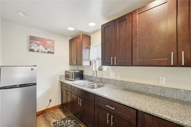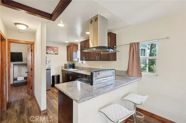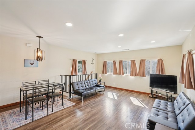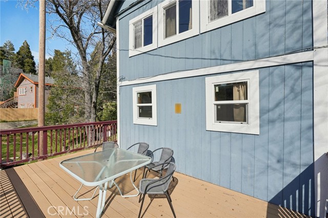Charming furnished mountain cabin just minutes from Lake Arrowhead Village, ideal for first-time buyers, a weekend escape, or a long- or short-term rental opportunity. Nestled in Cedar Glen, this quaint retreat offers the perfect blend of cozy cabin character and modern updates. The main level features a bedroom along with an open-concept living room, dining area, and kitchen, creating a comfortable and functional space for everyday living or hosting guests. The interior has been updated with laminate flooring and a refreshed bathroom showcasing a tiled tub surround. Downstairs, you'll find 2 additional bedrooms, offering flexibility for guests, family, or rental use. Go outside and enjoy the wonderful, oversized deck surrounded by trees — perfect for lounging, BBQs, or simply soaking in the peaceful mountain setting. The home also includes an exterior laundry area and plenty of parking, a rare and convenient feature in the mountains. This inviting cabin presents a fantastic opportunity to own a property in a desirable location close to the lake, shops, and dining. A great value with strong rental potential and classic mountain charm.