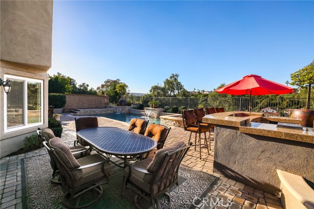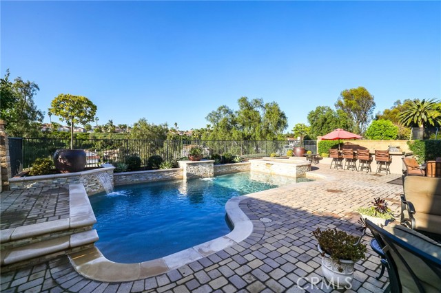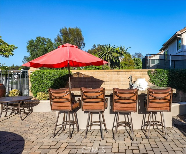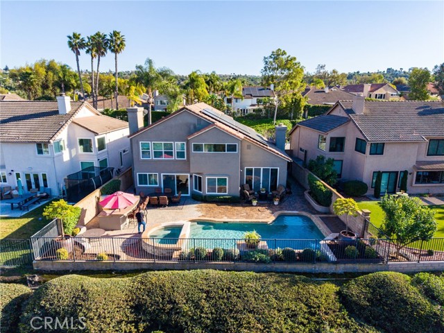Set on a quiet, single-loaded cul-de-sac street, this home stands out for its resort-style backyard and professionally engineered pool renovation, offering a rare combination of privacy, lifestyle appeal, and long-term value. The backyard is the centerpiece of the property, highlighted by an extensively updated pool that has been professionally stabilized with an engineered helical pier system — a rare and highly valued upgrade in coastal Southern California designed to enhance durability and minimize future movement. The outdoor space is completed with a built-in BBQ station and firepit, creating an ideal setting for entertaining, relaxing, and year-round enjoyment. The pool renovation was thoughtfully executed with both aesthetics and longevity in mind, delivering the look and feel of a private resort with the added confidence of structural reinforcement. Inside, the home offers a functional and versatile floor plan with a main-level bedroom, generous living areas, and the opportunity to personalize the interior over time. The living room serves as a dramatic focal point, featuring soaring ceilings, expansive windows that flood the space with natural light, and a stately white fireplace that flows seamlessly into the dining area and kitchen for an open-concept living experience. The private primary retreat is generously sized with an ensuite bathroom, while the secondary bedrooms are well proportioned with ample closet space. A fully paid solar system further enhances the home's appeal by delivering immediate energy savings with no lease or payments. With standout outdoor amenities, strong fundamentals, and a location that continues to shine, this property offers a peaceful residential setting close to local parks, top-rated schools, and premier shopping and dining — delivering a lifestyle defined by comfort, quality, and enduring value.