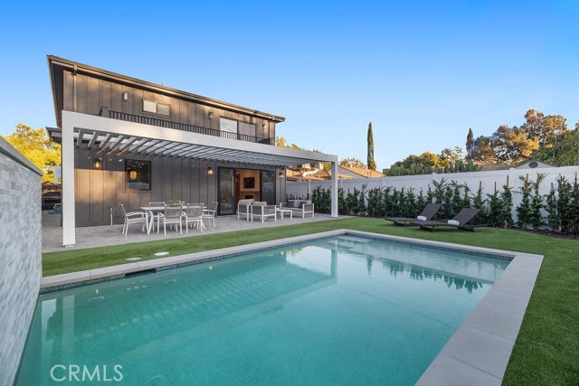 Tucked in the heart of coveted Toluca Lake, 4831 Sancola Ave offers a newly reimagined custom residence where modern luxury meets the timeless charm of Toluca Lake. As you enter, you're welcomed into a bright, open floor plan where engineered white oak floors guide you through the main living spaces. To the left, a versatile guest bedroom offers flexibility as a home office or private retreat. Even the powder room is a showpiece, featuring terrazzo flooring and a handcrafted Zellige tile backsplash — because in this home, every space makes a statement. The heart of the home is the bespoke chef's kitchen, designed with custom cabinetry, sleek stone counters, and top-of-the-line European appliances. It flows effortlessly into the dining and living areas, creating a seamless environment for entertaining and everyday living. Upstairs, you'll find three en-suite bedrooms, each with its own walk-in closet. The primary suite is a sanctuary with a Juliet balcony overlooking the backyard, a spa-inspired bathroom adorned with marble tile flooring, and an expansive walk-in closet. Outside, the entertainer's dream continues. Step into a resort-like backyard where a sparkling pool with cascading waterfall sets the stage for gatherings, relaxation, and warm California evenings. Beyond the property, you'll enjoy all that Toluca Lake is known for — boutique shopping, cafes, and fine dining within minutes. The home is served by highly regarded schools including Toluca Lake Elementary (8/10 GreatSchools) and Walter Reed Middle (8/10), with prestigious private options like Oakwood and Harvard-Westlake nearby. Easy access to major studios — Disney, Warner Bros., Universal — makes this an unmatched address for those seeking both luxury and convenience.