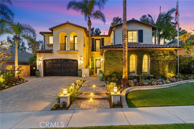 Located within the gated Presidential Collection, this Exceptional Entertainer's Residence offers one of the largest and most extensively upgraded floorplans in the community. Spanning approximately 4,337 sq ft on an 8,720 sq ft lot, the home delivers a grand-scale layout with refined finishes and seamless indoor-outdoor living. The expansive family room showcases a stone-clad, remote-controlled fireplace and opens through a dramatic 16' x 8' glass sliding door to the resort-style backyard. A fully custom chef's kitchen anchors the home with Arabescato Italian marble countertops, glass tile backsplash, custom cabinetry with Blum hardware, LED under-cabinet lighting, and premium appliances including a 48" KitchenAid dual-fuel range, 48" built-in refrigerator, two Bosch dishwashers, and a 166-bottle Vinotheque wine refrigerator. Adjacent to the kitchen, a dedicated butler's pantry enhances functionality and entertaining flow. Designed for elevated hosting, the home also features a separate built-in stand-behind wet bar appointed with Carrera marble countertops and a KitchenAid ice maker, creating a true entertaining hub that complements the main living spaces. The private backyard is a true resort retreat, featuring a pool with a water feature, oversized eight-person spa, and a fully built-out outdoor kitchen with BBQ, kegerator, ice maker, refrigerator, two-burner cooktop, and granite countertops. Additional highlights include an outdoor fireplace, TVs, covered dining area, custom iron shade structure with copper standing-seam roof, and a five-hole putting green. Interior upgrades include wood-like tile flooring downstairs, hardwood flooring in upstairs hallways, new carpet in bedrooms, custom hallway cabinetry with quartz countertops and under-cabinet lighting, upgraded LED lighting, Leviton smart switches, dual QuietCool attic fans, a new security system with exterior cameras, and two HVAC systems installed in 2021. The primary suite offers a private balcony, electric fireplace, upgraded shower, and custom closet built-ins with quartz countertops. The three-car garage includes EV charging, newer garage doors and a painted garage floor. Appealing Paver Driveway. Low HOA. No Mello-Roos. Ideally located near shopping, dining, golf, parks, and freeway access. This home will WOW you!