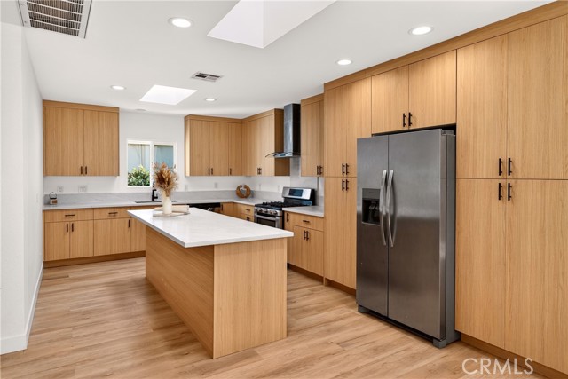 PRICED TO SELL! Welcome to this turn-key, newly remodeled single-story home on a quiet, tree-lined street in prime Valley Village, located within the desirable Colfax Charter School District. Offering 4 bedrooms, 2 bathrooms, approx. 2,167 sq. ft. of living space on an expansive 8,103 sq. ft. lot. A welcoming front porch leads to a private grassy yard with mature citrus and roses. Inside, a bright open-concept layout connects the living, dining, and kitchen areas, ideal for modern living and entertaining. Wide-plank white oak floors, recessed lighting, and newly remodeled kitchen and bathrooms create a warm, refined atmosphere throughout.The light-filled living room showcases soaring ceilings, a sleek smooth-stucco fireplace, and double French doors that open directly to the backyard, seamlessly blending indoor and outdoor spaces. At the heart of the home is a brand-new chef's kitchen, highlighted by a massive center island and skylights that flood the space with natural light, ideal for cooking, entertaining, or gathering with family and friends. The kitchen is beautifully appointed with custom oak cabinetry, soft-closing drawers and doors, quartz countertops, abundant storage, and high-end stainless steel appliances.The generously proportioned primary retreat offers a true sense of luxury and privacy. This serene suite features new dual walk-in closets, direct pool access, and a spa-inspired en-suite bathroom with soaring ceilings, designer pendant lights, double vanities, and an elegant dual walk-in shower. Three additional bedrooms and a full bathroom complete the home, including one bedroom with direct backyard access. The home includes a spacious family room with high ceilings that opens to a large grassy play area, thoughtfully separated from the pool to create a safe and inviting environment for children, pets, and outdoor gatherings. The resort-style backyard features mature orange trees, a fenced oversized classic pool, ample concrete patio space for BBQs and entertaining, and generous space with excellent potential to add an ADU. RTI plans for a 1 bed & 1 bath ADU available from the seller, ideal for multi-generational living or future income opportunities. Conveniently located just minutes from the freeways, local markets, dining, shopping, Universal Studios, and Hollywood, this exceptional home delivers unmatched value, convenience, and lifestyle, making it one of the most compelling opportunities in Valley Village today.