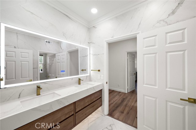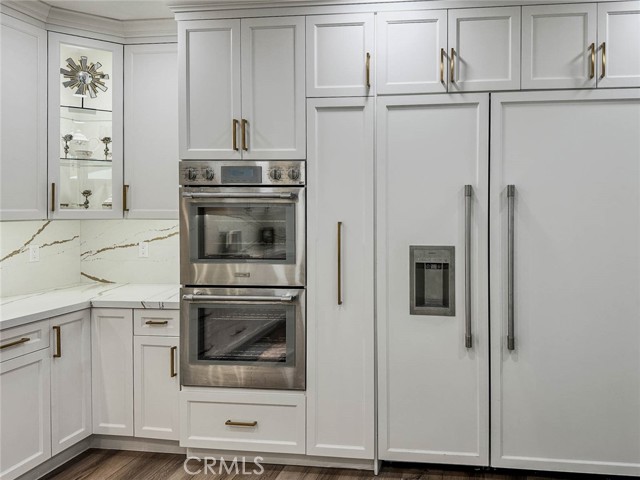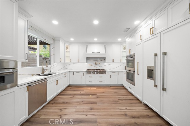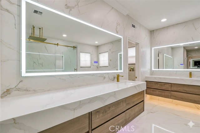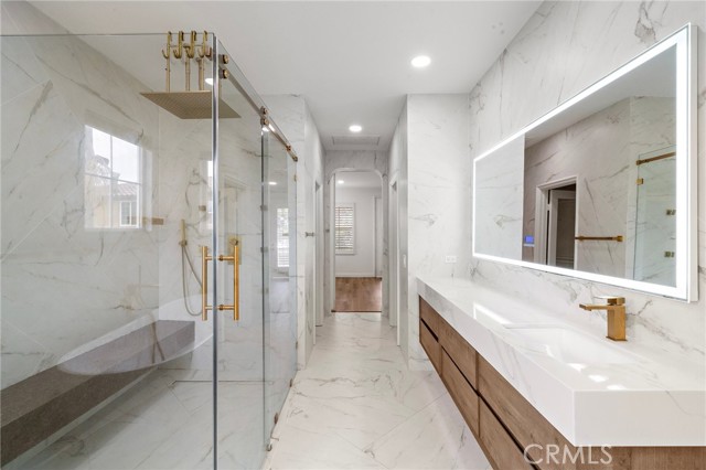 Meticulously remodeled luxury residence located in the highly desirable Northpark Square community of Irvine. Situated on a quiet cul-de-sac, this stunning home offers approx. 3,318 sq ft of refined living space with 4 bedrooms and 3 bathrooms. Elegant marble flooring and rich wood finishes flow throughout, including the staircase. Chef-inspired kitchen features top-of-the-line Thermador appliances: 6-burner gas range with grill, dual ovens, microwave, dishwasher, and built-in refrigerator with ice maker, plus abundant storage. Five-star hotel – inspired primary suite offers dual walk-in closets and a spa-like ensuite with smart automatic toilets. Multiple living areas include formal living and dining rooms, spacious family room, versatile downstairs room ideal for guest suite or theater, and upstairs loft perfect for home office. Paid-off solar system with Tesla battery, water softener, second-floor laundry, dual A/C units, security cameras, and two fireplaces (one on each level). Three-car garage with remote access. Professionally landscaped backyard ideal for entertaining. Prime location near award-winning schools, UCI, fine dining, shopping, I-5 freeway, and 241 toll road. Low-traffic cul-de-sac living at its finest. NO Mello-Roos.