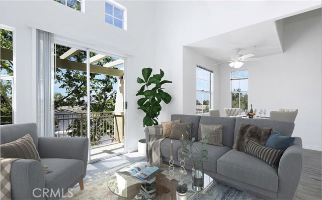Step into this light and bright one-bedroom plus loft retreat, where soaring ceilings and abundant windows create an open, airy atmosphere you'll feel the moment you arrive. Fresh interior paint, newer laminate flooring, and soft neutral tones provide a clean, modern backdrop that's both inviting and easy to personalize. Plush carpeting on the stairs and loft adds warmth and comfort where it matters most. Newer HVAC system. Located on the top level, this charming home offers exceptional privacy and peaceful balcony views — the perfect place to unwind with morning coffee or enjoy coastal evenings. The open kitchen flows seamlessly into the living area, making everyday living and entertaining effortless, and comes complete with a refrigerator making this home truly move-in ready. An in-unit laundry closet with a washer and dryer adds everyday convenience. The bedroom features mirrored wardrobes and a ceiling fan, while the versatile loft can easily serve as a second sleeping area, home office, or creative space. A glass-enclosed tub and shower complete the well-designed bath. A rare and valuable bonus for this beach-close location, the home includes a detached private garage, offering secure parking, as well as an assigned parking space. Beyond the home, enjoy resort-style community amenities including a pool, spa and fitness center, and open green spaces designed for relaxation and connection. Ideally located just minutes from beaches, dining, shopping, entertainment, and convenient access to the 73 Toll Road. This is more than a condo — it's a lifestyle opportunity in a highly desirable area, at a price that makes coastal living attainable. A must-see home you'll be proud to call your own.