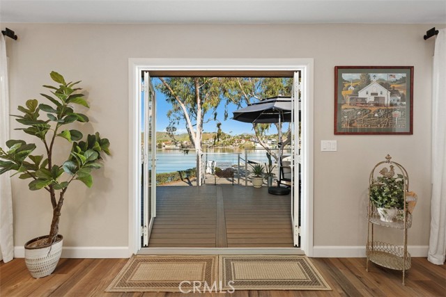 No need to look any further...? You have found your DREAM HOME! Welcome to 22344 Whirlaway Ct., Canyon Lake, CA. a Pristine, MOVE-IN-READY Waterfront Retreat! Nestled in one of the most desirable locations in the exclusive gated community of Canyon Lake, this stunning waterfront home offers the ultimate lakeside lifestyle.?No detail has been missed on this home which has been fully renovated over the past 2 yrs!?Situated on main?lake with breathtaking views, this 3-bedroom, 3-bathroom Single Story with spacious open floor plan and abundance of space is designed for comfort, elegance, and entertainment. Key Features: Prime Waterfront Location, direct lake access from your own private dock within a protected cove. This?open-concept floor plan is designed to maximize natural light and showcase lake views from multiple vantage points. The family room features LVP flooring (throughout the home), automated window coverings, and a cozy fireplace, for relaxation. Offering 2 Luxurious Primary Bedrooms, both with en suite bathrooms & dual sink vanities plus a separate generous bedroom (currently used as an office). The main primary bedroom is a true retreat, with indulgent tub, a step in shower, two large closets, one is a walk-in. There is a large interior laundry/craft room with sink & cabinetry. The Gourmet Kitchen is designed for both functionality and style and features custom shaker cabinets, quartz counters, stainless appliances a professional style Italian range, custom Alder finish pantry, a breakfast bar, and separate dining area off living room.?A 2-Car Attached Garage?offers ample space for vehicles, storage, or even a home workshop.?Step outside to the expansive deck, ideal for alfresco dining, barbecues, and enjoying mesmerizing views over the water and the private bocce/sport court. A truly efficient home offering solar energy, low maintenance landscape with drip system, newer high efficiency doors and windows, newer concrete roof (2023)... the list goes on and on!? Please make sure to see the?upgrades in the supplement section. This property is truly?Un-matchable!?As part of the highly sought-after Canyon Lake gated community, enjoy access to a private lake, a clubhouse, a swimming pool, tennis and pickleball courts, an equestrian center, golf course, private restaurant, private campground, and over 12 parks. If you're looking for a full-time residence or a weekend retreat, this home offers the perfect blend of luxury, relaxation, and adventure.