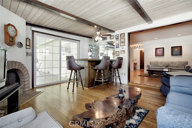 Nestled in the desirable Seven Hills neighborhood, this 1960 mid-century ranch sits on a quiet cul-de-sac and offers exceptional potential. The three-bedroom, two-bath home features an open floor plan with fireplaces in both the living and family rooms, a wet bar with refrigerator, a dedicated home office, and an eat-in kitchen. Hardwood floors, generous closet space, plantation shutters, and a spacious rear yard enhance the home's comfort and livability. A covered patio and side yard, ideal for gardening, create inviting indoor-outdoor living opportunities. The two-car garage, complete with a workbench, reflects the care of its previous contractor-owner. A rare opportunity to update, personalize, and bring your vision to life in a prime location.