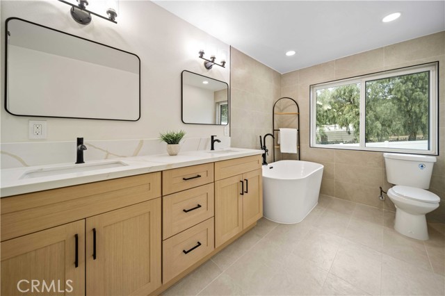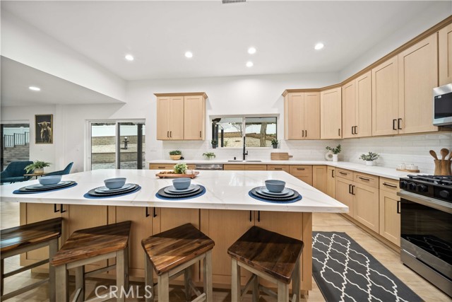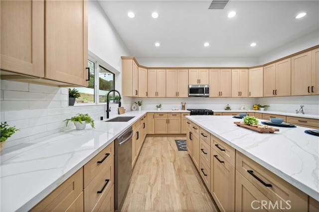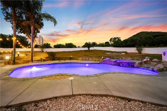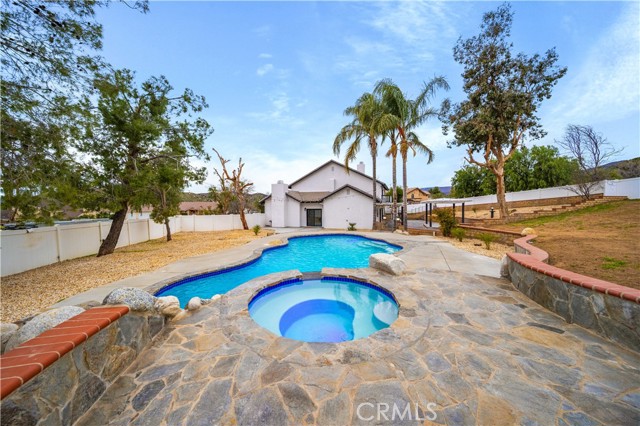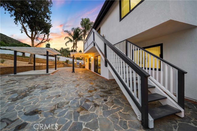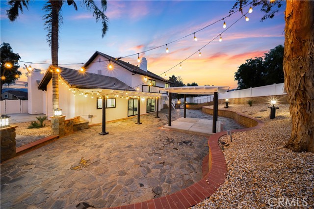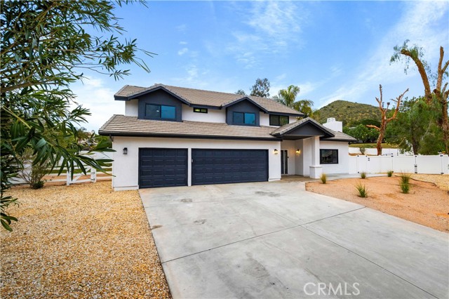 Nestled within a quiet cul-de-sac on a spacious one-acre lot, this beautifully designed two-story Acton residence offers four bedrooms and four bathrooms, thoughtfully configured to meet the needs of the most discerning buyer. With approximately 3,100 square feet of living space, every corner of this home has been carefully tailored to provide both comfort and sophistication. Upon entering, you are welcomed by a spectacular staircase and elegant laminate wood flooring that flows throughout the home in a soft, neutral tone. To the right, a spacious formal living room showcases a grand stone-finished fireplace with a striking wood mantel, creating a warm and inviting atmosphere. Adjacent to this space is a generous dining area, perfectly positioned to capture serene views of the backyard, pool, and spa.The heart of the home is the expansive kitchen, featuring newly installed neutral-toned cabinetry accented with sleek black hardware, abundant storage, and a large center island with seating. Stainless steel appliances complete this stylish and functional space. The kitchen opens seamlessly to the family room, where a second private fireplace adds warmth and character. Two large sliding doors flood the space with natural light and provide effortless access to the backyard. Located on the main floor is a private guest suite, offering peaceful views of the rear yard and its own full bathroom — ideal for visitors or multigenerational living.? Upstairs, the home continues to impress with a spacious primary suite designed as a true retreat. This luxurious space features an oversized walk-in closet and a spa-inspired en-suite bathroom, creating a private sanctuary for relaxation. Down the hall, two additional generously sized bedrooms share a Jack-and-Jill bathroom, providing convenient access from each room. Each bathroom throughout the home is beautifully appointed with elegant tile flooring and stunning tiled showers with full glass enclosures, adding a refined, spa-like touch to every space.? Outside, the expansive one-acre property offers endless possibilities. The beautifully landscaped grounds include a stone-paved patio with exterior lighting and a pergola — perfect for entertaining or unwinding under the stars. An additional tucked-away section of the rear yard provides space for horses, animals, corrals, tractors, or recreational toys, making this property as versatile as it is beautiful.