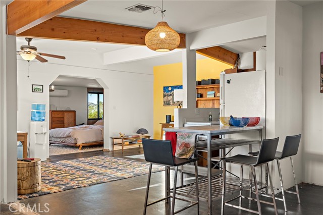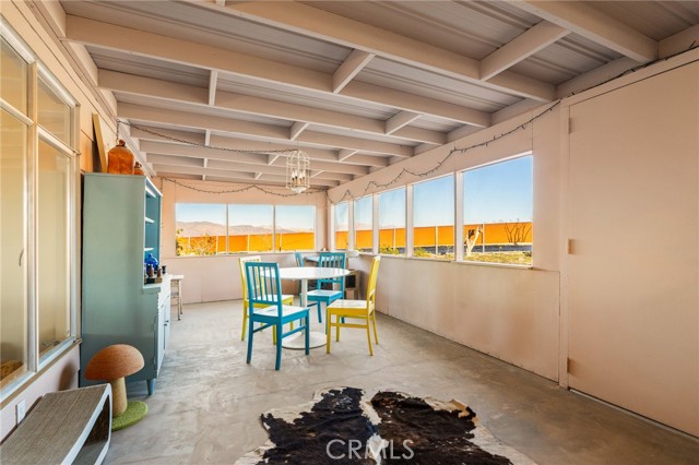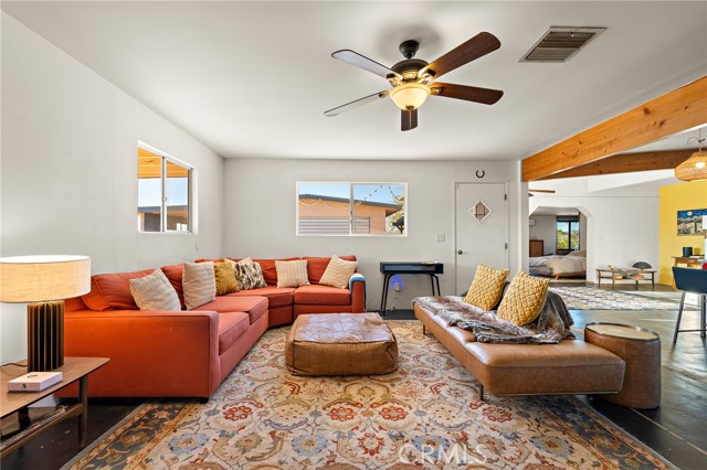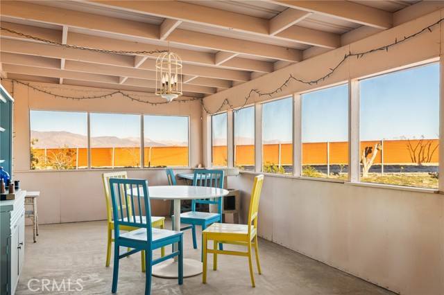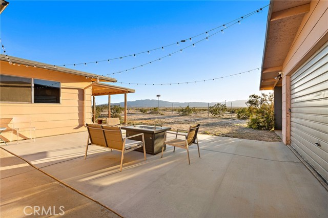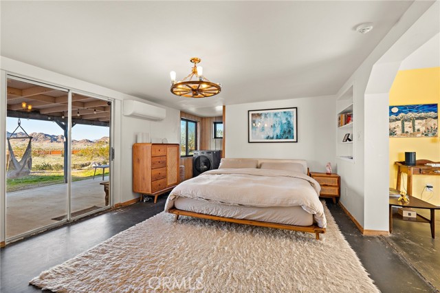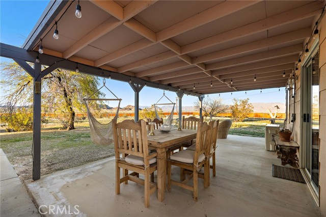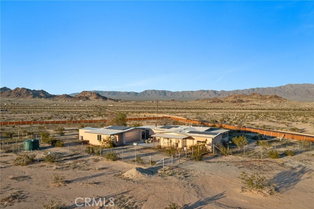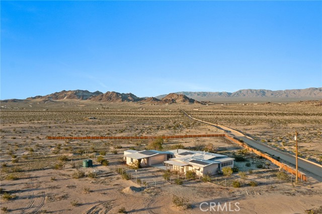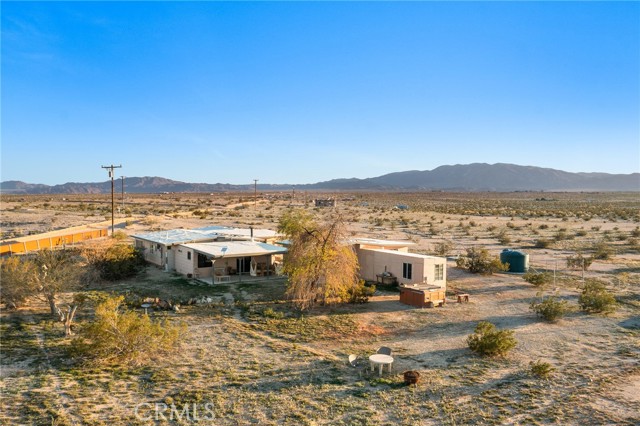 Priced for a quick sale!! Perched on 5 scenic acres in Wonder Valley and facing the iconic Godwin Mountains, this approximately 1,400 square foot 2-bedroom, 1-bath home offers space, privacy, and exceptional value — truly one of the best deals in the area. Inside, a second living room functions as a flexible primary bedroom retreat complete with a cozy fireplace, while two additional spacious bedrooms, a huge living room, generous dining area, and a well-appointed kitchen provide comfortable everyday living. A structural beam installation has opened the main living space into an inviting open-plan layout, and mini-split systems are installed throughout the home for efficient year-round comfort. Recent upgrades include a large, fully renovated bathroom spanning the length of the home, completed electrical work above the ceiling, a new exterior water heater to create more interior space, and a new well-water filtration system, with a reverse osmosis system included and ready for connection. Outdoors, enjoy perimeter fencing for privacy from passing headlights, removed interior fencing to enhance property flow, a concrete patio near the two-car garage, front and back porches, a relaxing hot tub, and serene landscaping that creates a peaceful, balanced desert setting.