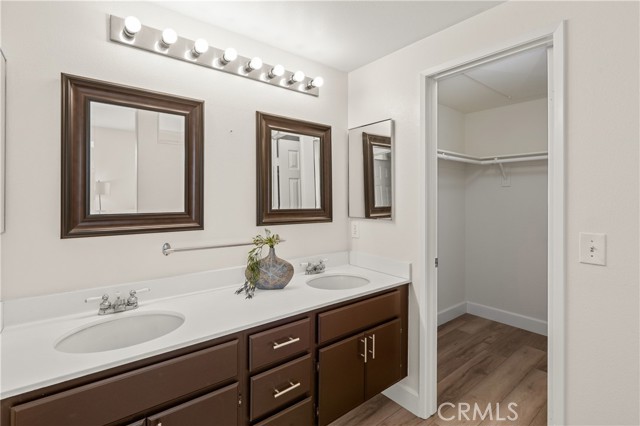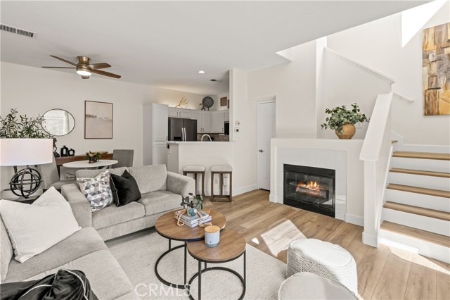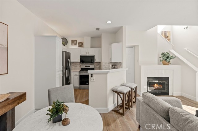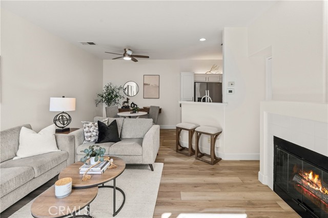 Welcome to this charming 1 bedroom 1.5 bath condo nestled in the highly sought after Monaco community in Anaheim Hills! Spanning 865 Square Feet, this home offers a perfect blend of comfort and convenience. Step inside and enjoy the spacious living room with gas fireplace and sliding doors that lead you to your own private balcony for outdoor entertaing and relaxing. The interior has recently undergone lovely upgrades including wood plank vinyl flooring. The kitchen boasts new appliances,5 burner gas stove, newer stainless sink and quartz countertops. Step upstairs to your peaceful bedroom offering ensuite bath with double sinks and fabulous walk-in closet. This condo also features a unique advantage - an attached 2 car tandem garage + a driveway large enough to park an SUV, providing ample parking space for visiting friends or additional storage needs. Residents of Monaco community are spoiled with resort-style smenities including sparkling swimming pool, 3 spas, tennis courts, gym, club house and more. Perfectly located near top rated schools, parks, shopping and dining plentiful options, this condo ensures you experience all that Anaheim Hills has to offer while enjoying tranquility within your own retreat. Don't miss out on making this delightful condo your home.