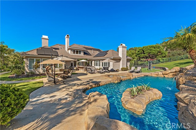 PROFOUNDLY RARE, UTTERLY INCREDIBLE and simply.... just nothing like it! This estate is a complete DREAM! Approximately 2.65 acres of....MAGNIFICANCE! Starting with the home: At the end of the CDS in this small 'Enclave' of custom homes, is YOUR dream home! Primary suite downstairs-which while common elsewhere in the country, is rare in CA. Big & beautiful with a fireplace retreat area, direct access to the yard (which just defies description), large walk-in closet & gorgeous totally separate bathrm with jetted tub & steam shower. Also on the main level is another suite which is currently used as an office, then, a delightful 'flex' room that's perfect for home gym, playroom, theatre - YOU NAME IT! Without a doubt, the best family rm, dining, kitchen... that you have EVER SEEN! Huge walk-in pantry, laundry, 1/2 bath & second stairway off the kitchen. Upper level has 3 large and amazing full suites & THE MOST AMAZING....ummmm... BUNK RM? CRAFT RM? LIVING RM for a nanny or in-laws? Yoga Studio?...YOU NAME IT! The possibilities are completely endless! Basically a very smart home as you can control most everything from your phone. Just to increase the fever pitch that will be generated by this home, let's discuss the outside! INCREDIBLE pool/spa with long exhilarating slide, large sunning and relaxing poolside areas, giant BBQ and 'kitchen area', your very own playground, 'chipping' hillside to fine tune your golf game and YOUR VERY OWN PICKLEBALL COURT with seating area, lights for evening games and a beautiful panoramic view! Imagine a sunset game and refreshments in your own back yard! Privacy is a word that if honest - is difficult to use and even more uncommon to actually FIND! This is an exceptionally rare & thrilling opportunity to actually own an estate of this significance in Orange County's prestigious enclave of Coto de Caza. A ONCE-IN-A-LIFETIME privilege that few will ever have the chance to own or enjoy!