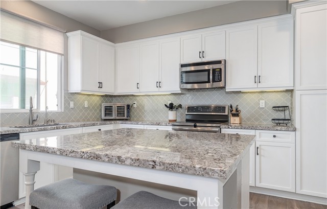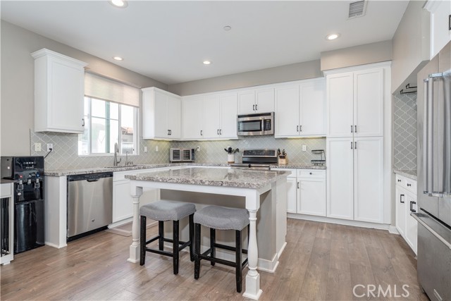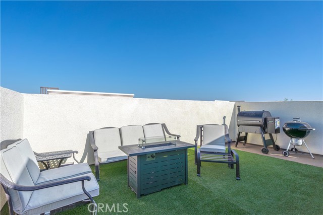 Welcome to this stunning tri-level property, where modern comfort meets elegant design. Enjoy the benefits of paid-off solar panels and stylish white window shutters throughout the home. On the first floor, you'll discover a versatile bonus room that can easily be transformed into a home gym, an inviting guest room, or a productive office space. Ascend to the second floor, where a conveniently located laundry room and a chic half bathroom offer practicality alongside style. The open-concept kitchen, complete with a charming mini bar, seamlessly flows into the spacious living room, creating an ideal setting for relaxation and entertaining. The third floor is dedicated to personal retreats, featuring a luxurious master bedroom with an en-suite master bath for your private sanctuary. Two additional bedrooms share a beautifully appointed bathroom, making this layout perfect for families or guests. Step outside to the magnificent private rooftop deck adorned with lush astro turf, where you can take in breathtaking 360-degree views. This space is perfect for celebrating life's special moments, providing a front-row seat to the spectacular fireworks displays for both the Fourth of July and New Year's Eve. Located just one mile from the excitement of Knott's Berry Farm, within walking distance to The Source Mall, and only a quick 10-minute drive to the magical experience of Disneyland, this property perfectly combines convenience with vibrant living.