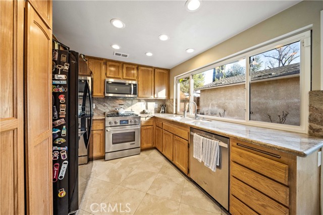 Quiet cul de sac living in the heart of Valencia. This well located single story home offers a functional layout and comfortable living spaces. Featuring 4 bedrooms and 2 bathrooms, the home provides an open and inviting feel with vaulted ceilings, great natural light, and a fireplace in the main living area. The kitchen offers ample counter space and connects seamlessly to the dining and living areas, making it ideal for everyday living and entertaining. The primary bedroom includes an en suite bathroom, while the additional bedrooms provide flexibility for guests, home office, or family use. Sliding doors lead to a low maintenance backyard with usable outdoor space, perfect for relaxing or entertaining. Additional highlights include an attached two car garage, extended driveway parking, and a desirable neighborhood setting. The community offers a pool, spa, and playground, with low HOA dues and no Mello Roos. Conveniently located near paseos, shopping, dining, parks, schools, public transportation, and easy access to the 5 freeway near McBean Parkway. A great opportunity to own a well priced home in one of Valencia's most desirable neighborhoods.