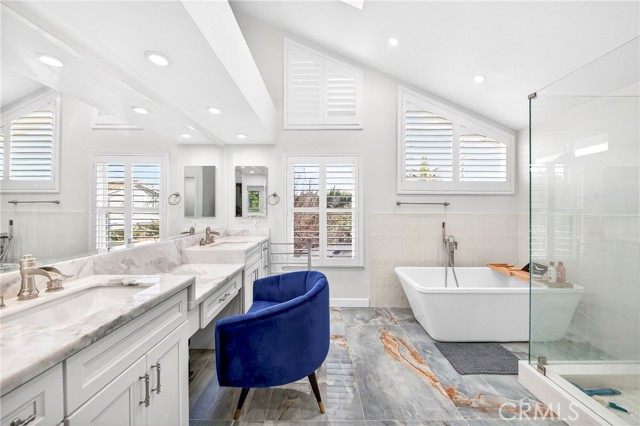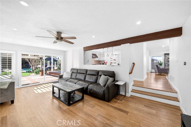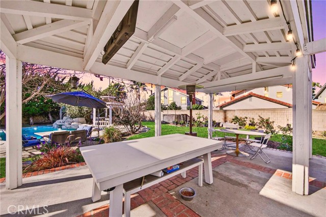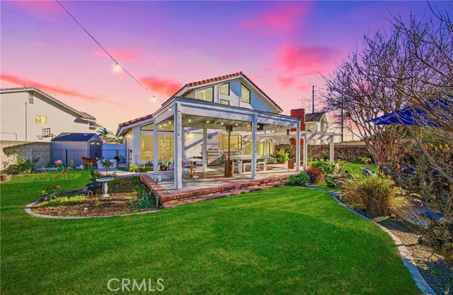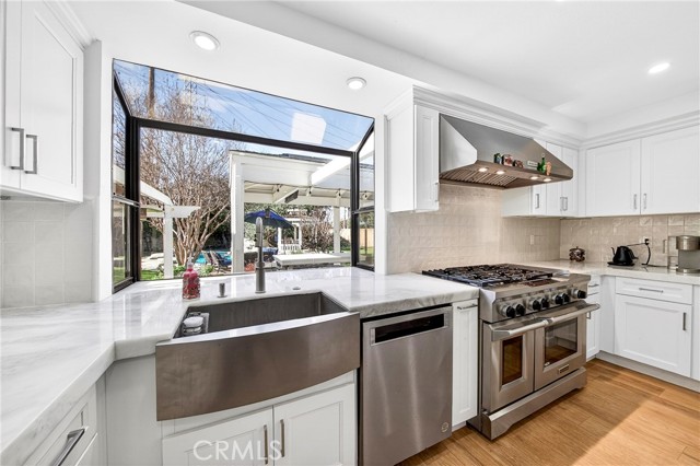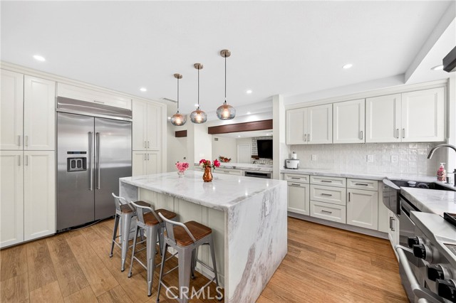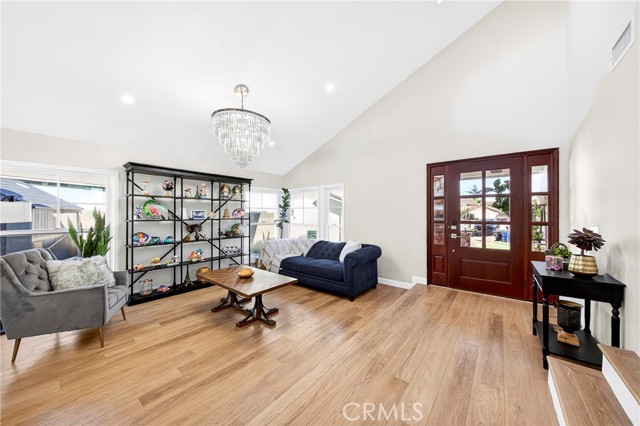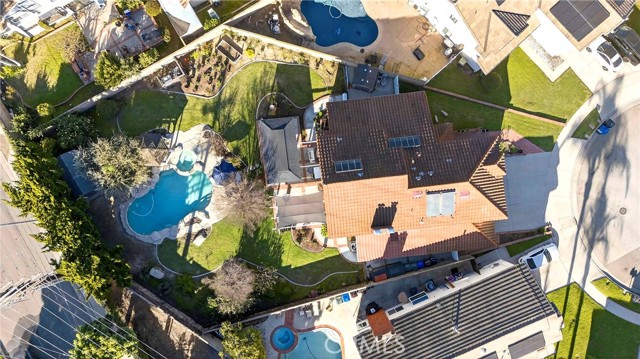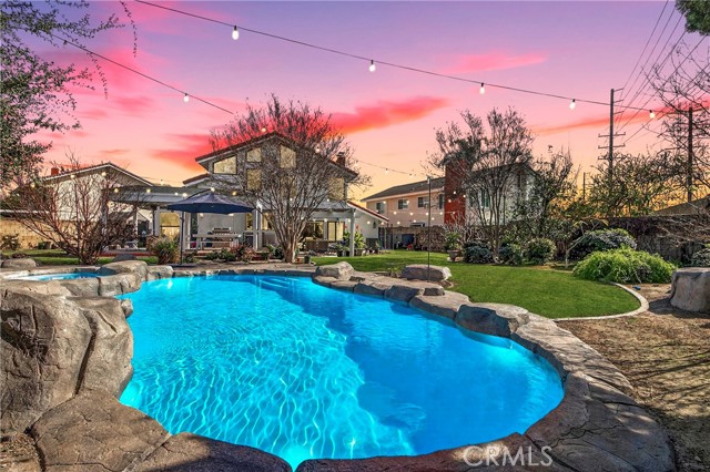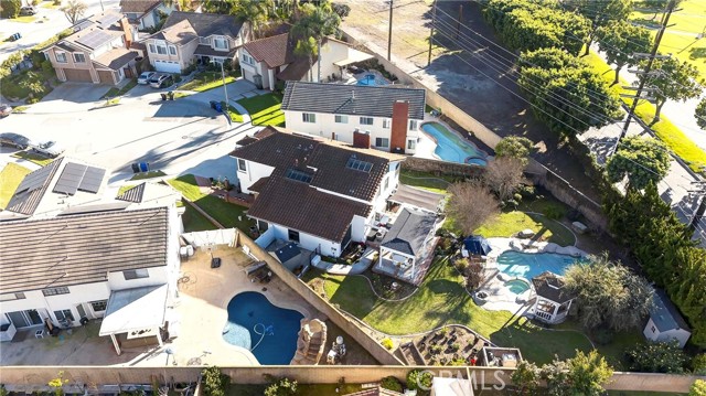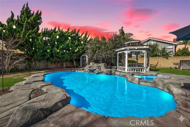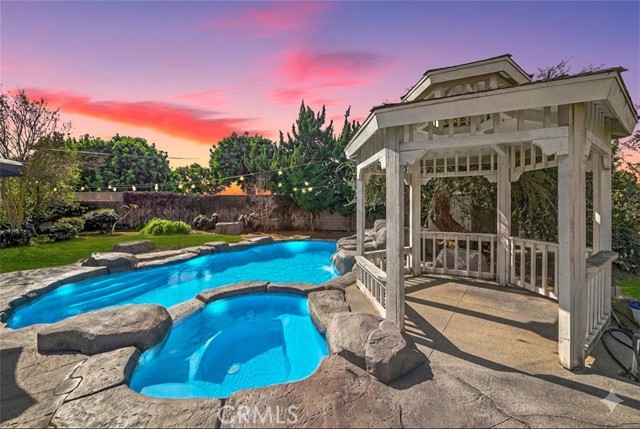 Welcome to one of the most unique properties in Cerritos! Situated on an expansive 12,376 sf cul-de-sac lot — a true rarity in a city known for smaller parcels — this beautifully renovated 5 bedroom, 3 bathroom home with a 3 car garage offers luxury, privacy, and resort-style living. The oversized lot also provides exciting potential to add an ADU, giving future owners flexibility for multigenerational living or additional rental income. Step into your own private backyard oasis, featuring a sparkling pool with a waterfall, heated jacuzzi, and a charming wooden garden gazebo. Inside, the home was completely renovated in 2023, including new HVAC system and ducting, updated plumbing with PEX piping, new electrical outlets, and a tankless water heater. The living room boasts soaring 14-foot vaulted ceilings and an open, airy feel. The dream kitchen is designed for serious cooking and entertaining, equipped with high-end KitchenAid appliances, a commercial-grade 48-inch range, 42-inch refrigerator, pull-out microwave, and a spacious island topped with beautiful designer quartz countertops. A charming bay window overlooks the lush backyard retreat. The family room connects seamlessly to the kitchen and features a cozy fireplace with a built-in wood storage nook, plus direct access to the backyard through sliding doors. The main level also includes a bedroom, full bathroom, laundry room, and direct access to the 3-car garage with epoxy flooring. Upstairs, the luxurious primary suite offers its own fireplace, sitting area, large walk-in closet, and a spa-inspired bathroom with dual sinks, freestanding soaking tub, and separate shower. All additional bedrooms are generously sized and easily accommodate full furnishings. Additional highlights include tile roof, new exterior paint, new dual-pane windows, recessed lights throughout, sprinkler system, new side gates, and a large tough shed for extra storage. Located within the highly acclaimed ABC Unified School District, this exceptional home combines space, style, prime location, extensive upgrades, and a versatile layout perfect for both everyday living and entertaining. Homes like this don't come around often — don't miss your opportunity to make it yours!