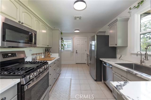 Welcome to this charming 2-bedroom, 1-bath Lakewood Park home where thoughtful upgrades meet everyday comfort. Inside, you'll find refinished original wood floors, dual-pane windows, custom window coverings, central air conditioning, and a whole-house fan; creating an efficient and comfortable living environment year-round. The upgraded kitchen blends style and function with contemporary finishes, quartz counter tops, modern cabinetry, new stainless steel kitchen sink, open shelves, and an area perfect for a kitchen nook. The remodeled bathroom (2025) feels fresh, clean, and effortlessly inviting with a custom vanity, new cast iron extra wide bathtub, custom tile, recessed medicine cabinet and modern fixtures. Behind the scenes, the home offers peace of mind with a new roof (2021), updated water heater, grounded electrical, and rain gutters — the unsexy stuff buyers secretly love. Step outside and prepare to be impressed — the reimagined oversized backyard is truly a standout. Designed with intention, it features custom lighting and personal touches throughout, creating the perfect backdrop for entertaining, unwinding, or future expansion. The front door is equipped with a custom made stainless steel security screen door and the ring camera has been hard wired for ease of use. The attached two car garage has built in storage and a pull down ladder to added storage attic area. Ideally located close to schools, parks, restaurants, and major freeways (605, 405, 105 and 5), this home delivers both lifestyle and convenience — because yes, you can have both.