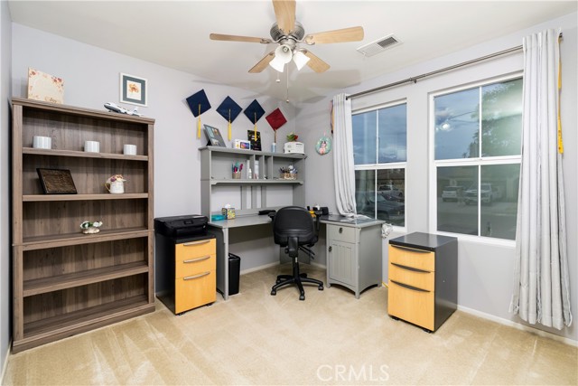 Stunning Turn-Key Residence in The Cove. This meticulously maintained home in the sought-after Cove community exemplifies true pride of ownership. Boasting a "like-new" feel, this residence offers a seamless blend of modern comfort and thoughtful design. Sophisticated Living Spaces As you enter, you are greeted by an expansive open-concept living and dining area, perfect for both quiet evenings and large-scale entertaining. The heart of the home features: • Chef's Kitchen: Equipped with a large breakfast bar, ample counter space, and a dedicated pantry for superior organization. • Split Floor Plan: Designed for maximum privacy, the secondary bedrooms are located toward the front of the home, while the primary suite serves as a quiet retreat in the rear. Private Accommodations • Primary Suite: A spacious sanctuary featuring a large walk-in closet and a private ensuite bathroom. • Secondary Bedrooms: Two well-appointed bedrooms with plush carpeting and ceiling fans, sharing a conveniently located full bathroom. • Functional Laundry: A dedicated laundry room provides a practical transition between the living areas and the garage. Exceptional Outdoors & Efficiency • Outdoor Living: The beautifully manicured backyard features a lush lawn and a covered patio, ideal for al fresco dining. • Sustainability: Enjoy the financial benefits of a fully integrated solar system, designed to offset electricity costs. • Parking & Storage: A spacious 2-car garage provides plenty of room for vehicles and additional storage needs. This home is truly move-in ready and stands in impeccable condition.