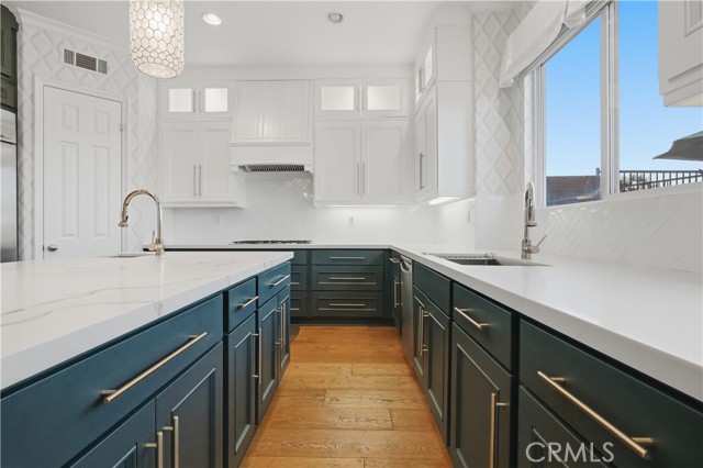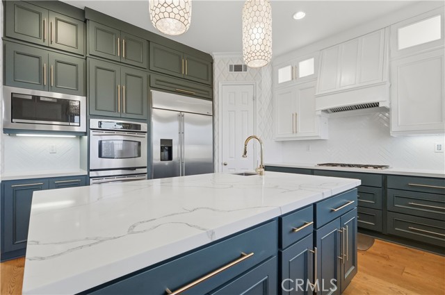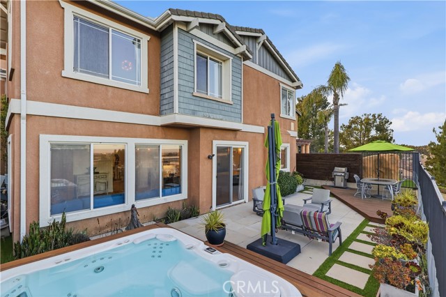 Nestled at the end of a quiet cul-de-sac within an exclusive gated community, this exceptional five-bedroom executive home offers privacy and sweeping views of the San Gabriel Mountains. Built in 2003 and thoughtfully upgraded, the residence blends timeless design with modern comfort. The gourmet kitchen features premium stainless steel appliances, double ovens, quartz countertops with marble veining, dual sinks, gold accents, lighted cabinetry, a walk-in pantry, and an abundance of cabinetry for optimal storage and functionality. The versatile floor plan includes a main-level ensuite bedroom, rich hardwood flooring, two fireplaces, formal dining room, and expansive living spaces filled with natural light. A dedicated laundry room with built-in storage and utility sink adds everyday convenience. Upstairs offers two additional ensuite bedrooms and a spacious primary suite positioned to capture mountain views from its windows. The primary bathroom showcases an oversized vanity area with extensive storage, a separate soaking tub and walk-in shower. Relax in the bath while enjoying mountain views and watching planes descend in the distance. The low-maintenance backyard features a raised deck, above-ground spa, and panoramic views, perfect for enjoying sunrises, sunsets, and seasonal fireworks. A three-car garage with ample storage and an extended driveway complete the home. Ideally located in Signal Hill with convenient access to freeways, beaches, CSULB, Long Beach Airport, and scenic walking trails.
