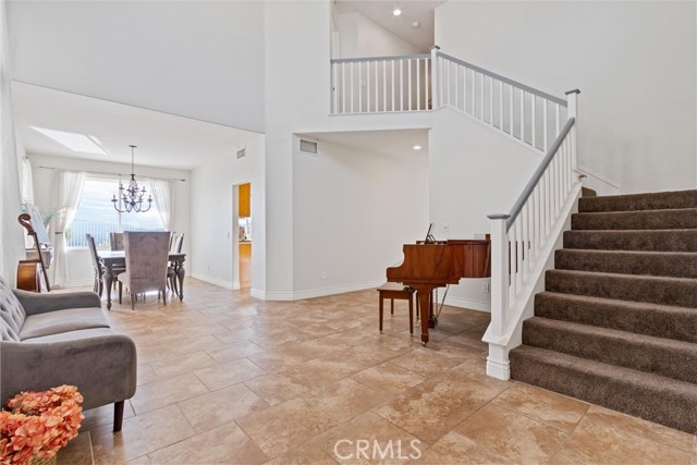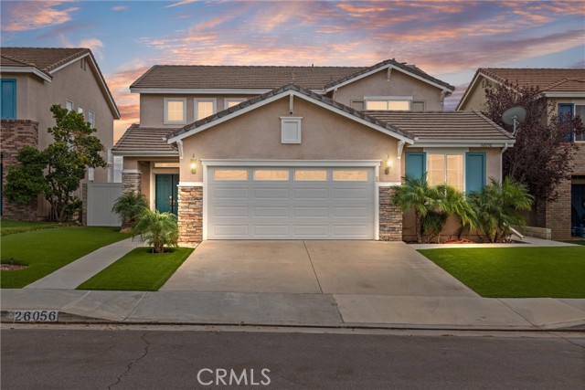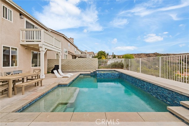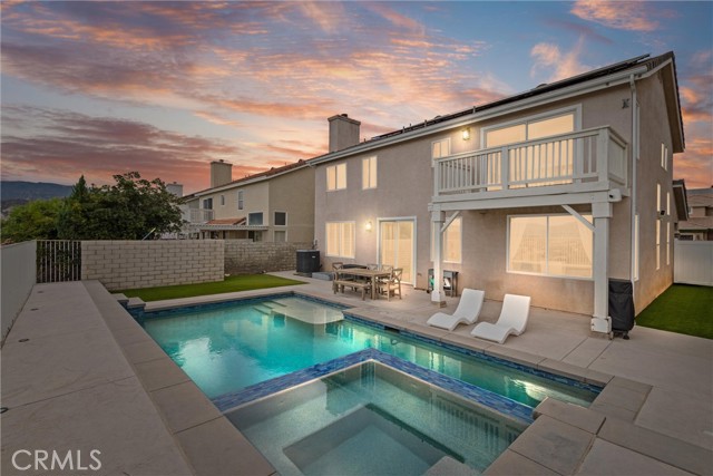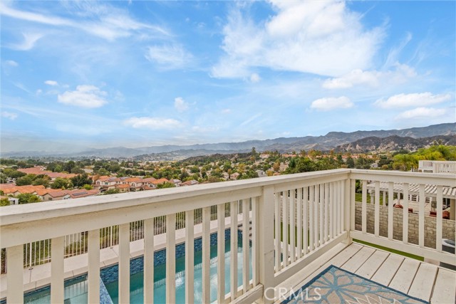 Welcome to your dream home in the heart of Stevenson Ranch. This beautifully designed two-story residence offers 4 spacious bedrooms and 2.5 baths, including a convenient main-floor bedroom ideal for guests or a home office. From the moment you enter, soaring vaulted ceilings and a grand staircase create an inviting sense of elegance and space. The home features an immaculate open-concept living area with a formal dining room, a cozy family room with a masonry fireplace, and elegant travertine tile flooring. The gourmet kitchen is a true showstopper, complete with Caesarstone countertops, a large center island, gas cooktop, dual ovens, and ample cabinetry — perfect for entertaining or everyday living. Enjoy breathtaking panoramic views of the Santa Clarita Valley from the kitchen, dining area, family room, and the luxurious master suite. Upstairs, you'll find three generously sized bedrooms, including a stunning primary suite with sloped ceilings, a private balcony, and a spacious ensuite bath featuring dual vanities, a soaking tub, and a separate shower. Step outside to your private backyard oasis, designed for both relaxation and entertaining. Take in the valley views while enjoying the sparkling pool and spa, concrete patio, and low-maintenance artificial turf — perfect for year-round enjoyment. Additional highlights include solar power, whole-house water filtration, a two-car garage, low HOA, and location within the highly sought-after William S. Hart School District. Ideally situated close to shopping, dining, parks, and easy freeway access, this pristine view home is located in one of Stevenson Ranch's most desirable neighborhoods. With exceptional space, views, and value, this home is not to be missed — schedule your private showing today before it's gone.