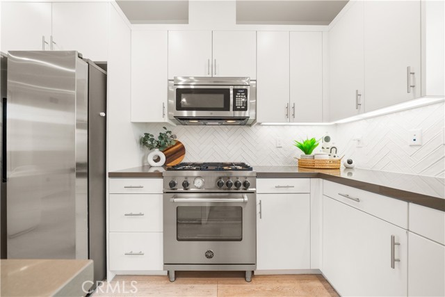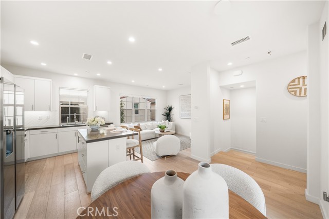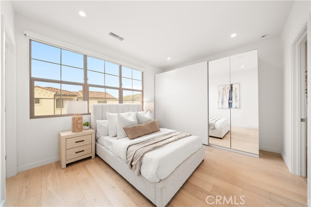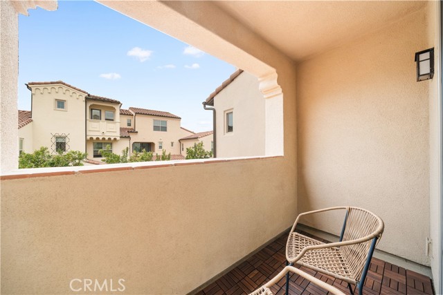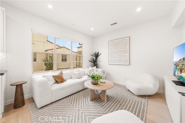 Situated in the serene hillside setting of Portola Springs, 184 Elkhorn is a beautifully maintained Brisa Plan 1 condominium in the heart of Irvine. The home showcases high-end engineered hardwood flooring throughout, creating a seamless and elevated feel, complemented by a bright, open layout designed for both comfort and functionality. The modern kitchen is thoughtfully appointed with quartz countertops, white shaker-style cabinetry, stainless steel appliances, and a generous island with bar seating, seamlessly connecting to the living and dining spaces filled with natural light. The seller has also installed a brand-new premium heated water purification system, along with a whole-house water softener system, ensuring improved water quality, reduced mineral buildup, and enhanced protection for plumbing and appliances. A private balcony off the dining area provides a pleasant extension of the indoor living space. The living room and bedrooms are enhanced with sleek motorized window shades, offering a modern, tech-forward touch while providing effortless light control and privacy. Upstairs, the residence offers two spacious en-suite bedrooms, including a well-designed primary suite with a walk-in closet, dual vanities, and a tiled walk-in shower. Additional highlights include upstairs laundry, high ceilings, recessed lighting, an energy-efficient whole house fan, and a tankless water heater. The direct-access two-car attached garage features built-in storage and is equipped with a Tesla-compatible EV charging outlet, making it ideal for electric vehicle owners. Residents of Portola Springs enjoy access to an impressive collection of resort-style amenities, including Olympic and junior Olympic swimming pools, clubhouses, tennis and sports courts, beach volleyball courts, parks, playgrounds, and miles of scenic walking and biking trails. Ideally located near the top of the community, this home is within walking distance to Loma Ridge Elementary School and Portola Springs Community Park, just minutes from Woodbury Town Center and Irvine Spectrum, and a short drive to Laguna Beach and John Wayne Airport.
