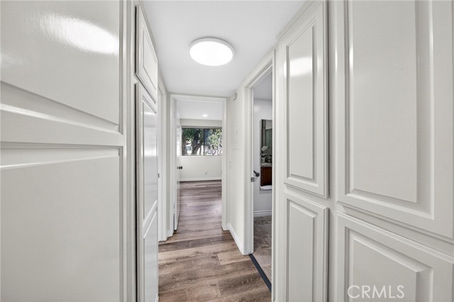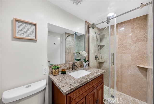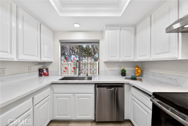 Welcome to your MODEL PERFECT home in the heart of the Landmark Community, designed exclusively for 55+ seniors. This extensively remodeled ground-level, corner-unit home offers not just comfort, but a sense of belonging and warmth. You will be greeted by 24/7 security guard, ensuring your peace of mind and safety. Step into a lovingly cared-for home featuring 2 bedrooms and 2 baths. The bright, open living space invites you to unwind, with a charming dining area and primary suite that boasts a mirrored dressing area and a NEW bathroom with a convenient step-in shower. The second bedroom and a full bathroom is just down the corridor. Throughout the home you will find newer flooring, newer zebra blinds, and soft recessed lighting. The Kitchen has been tastefully upgraded with quartz countertops, and a stylish Tray ceiling light. Stay comfortable year-round with NEWLY installed air conditioning, and enjoy the convenience of a newer stacked washer/dryer in its own separate room on the patio. A true highlight of this home is the one-car detached garage located close to the home. This home is conveniently situated within the community, with no steps and easy access to parking. As a resident, you will enjoy a vibrant community life with access to a clubhouse, pool, library, tennis court, exercise room, and many other amenities. You will also be close to La Mirada Golf Course, Regional Park, and a variety of markets, restaurants, and entertainment options in a few minutes. This is more than just a house; it's a place where you can truly feel at home. Don't miss this opportunity to own your dream home.