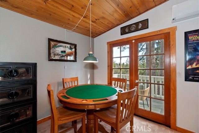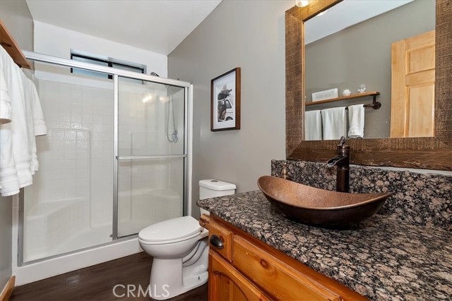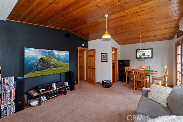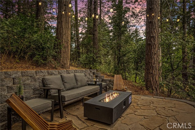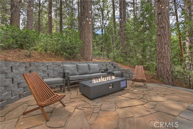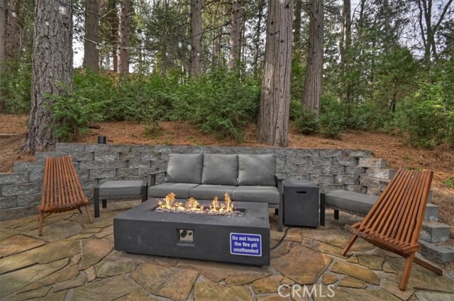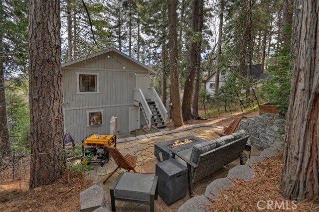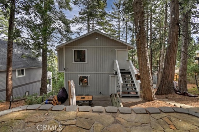 Modern mountain living meets cozy cabin charm in this beautifully remodeled, one-of-a-kind designer home. Surrounded by nature, the property invites you to relax and entertain with three spacious decks and a stunning backyard featuring multiple seating areas, a fire pit, vegetable garden, BBQ grill, and even a pizza oven. It is the perfect setting for year-round gatherings under the pines. Highlights and Layout: - Versatile Living Spaces: Designed with flexibility in mind, each level offers its own entrance, making this home ideal for multigenerational living, a growing family, or an income-producing rental. Income Potential: The property was previously approved and permitted to host up to 10 Airbnb guests. - Lower Level: Includes a bedroom, full bathroom, and a large storage room with the potential to serve as a kitchenette. - Main Level: Showcases an open-concept layout with an oversized dream kitchen, expansive living room with a wood-burning fireplace, exposed beam ceilings, a bathroom, and a laundry room. - Upper Level: Offers two more bedrooms, a full bathroom, and a theater/game room to ensure space and privacy for everyone. Modern Comforts and Upgrades: -Premium Amenities: Stay comfortable with mini-split A/C units, high-speed fiber-optic internet wiring, and a backup generator. -Recent Improvements: Upgrades include granite countertops, updated appliances and sinks, fresh interior and exterior paint, and a new retaining wall. -Convenience: Includes off-street parking for 3 to 4 cars, extensive build-up storage, and comes furnished per the seller's inventory list. The Mountain Lifestyle -Location: Ideally located near hiking and biking trails, shopping, and schools. -Proximity: Just minutes from Lake Arrowhead, Arrowhead Village, Blue Jay, and SkyPark at Santa's Village. -Easy Access: Quick access to Highway 18 for easy trips to the ski slopes. This is more than a home, it is a mountain lifestyle.