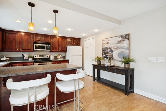 Welcome to your dream home at 10 Prescott, located in the highly desirable Northwood Village of Irvine! Nestled against the scenic foothills, this luxurious Sheffield Manor Residence offers 2 spacious bedrooms and 2.5 baths with nearly 1,400 sqft of beautifully upgraded living space. This home enjoys a quiet neighborhood setting complete with charming street lamps. Step inside to discover upgraded flooring and high ceilings. The chef-inspired kitchen features a functional layout and lots of cabinet storage — perfect for preparing gourmet meals. The open-concept living area flows effortlessly from area to area and the skylight in the family room offers bright natural light ideal for enjoying morning coffee. Upstairs, the primary suite includes an ensuite bathroom for convenience and privacy. The secondary bedroom which can function as an upstairs office has access to a dedicated hallway bathroom. Additional highlights include custom designer paint, custom window coverings, and a two-car garage. Enjoy resort-style living with community amenities such as a private pool and open green spaces perfect for recreation and socializing. Located right next to Sierra Vista Middle School, 10 Prescott feeds into the award-winning Irvine Unified School District — including Brywood Elementary, Sierra Vista Middle, and Northwood High School. Live in Luxury!