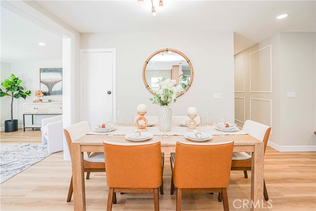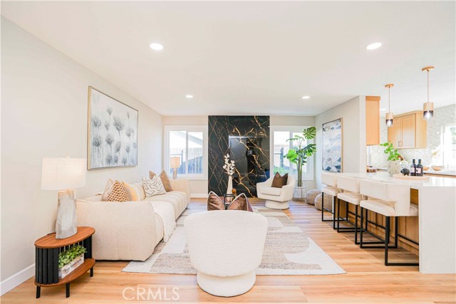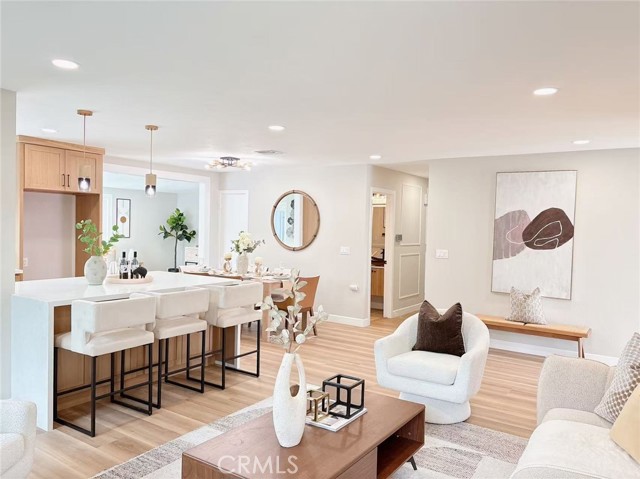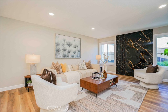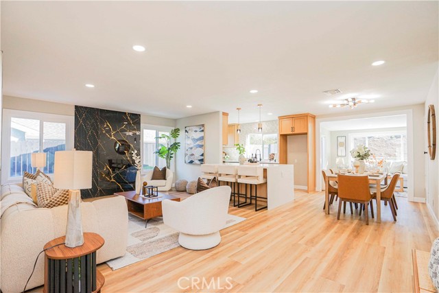 Beautifully remodeled 4-bedroom, 2-bathroom home located in one of Yorba Linda's most desirable neighborhoods. This turnkey property features an upgraded artificial turf front yard and a thoughtfully designed backyard perfect for relaxing, gardening, or entertaining. Inside, warm white oak plank waterproof luxury vinyl flooring creates a bright and inviting atmosphere. The main living areas offer a seamless flow between the living room, dining area, kitchen, and family room. The updated kitchen showcases modern finishes and functional design. All bedrooms are privately situated on one side of the home, including a spacious primary suite with a custom closet system and upgraded en-suite bathroom. The secondary bathroom has been tastefully refreshed with timeless finishes, and all bedrooms are generously sized with customized glass closet doors. Additional upgrades include recessed lighting, a new front door, new garage door, newer AC system, and new vinyl fencing. Conveniently located within walking distance to Yorba Linda High School, close to Vons, parks, and public transportation, this home offers comfort, style, and an excellent location in the heart of Orange County.