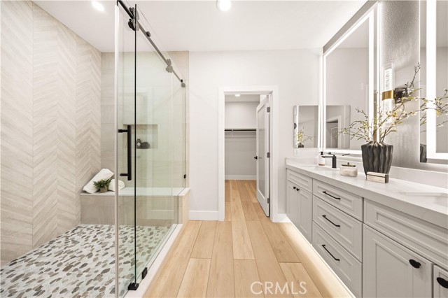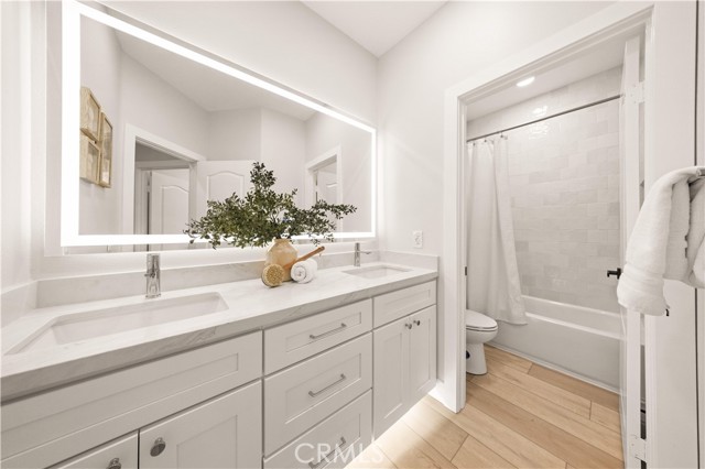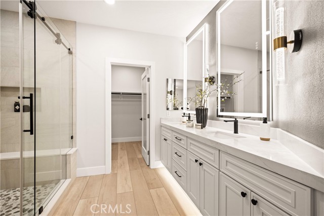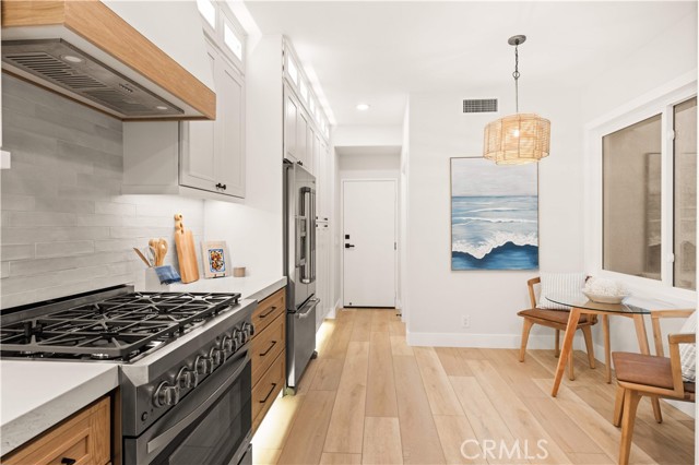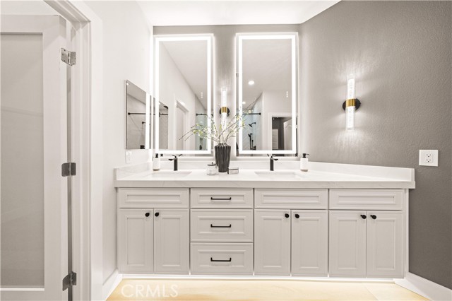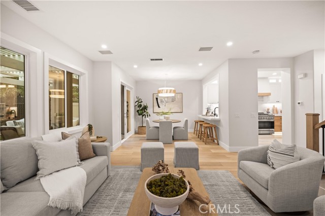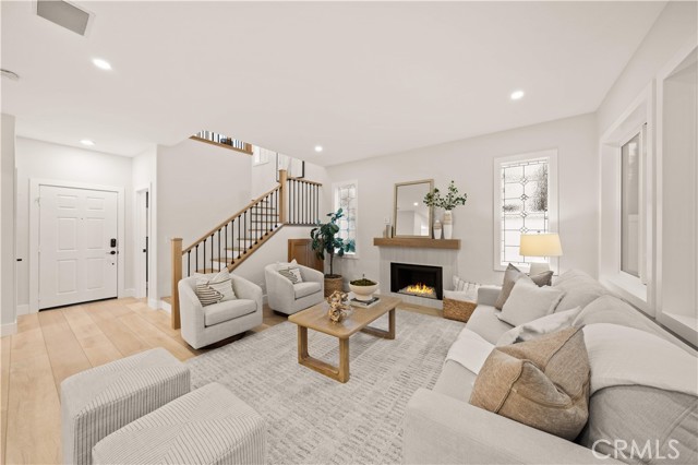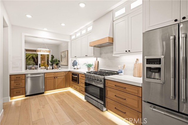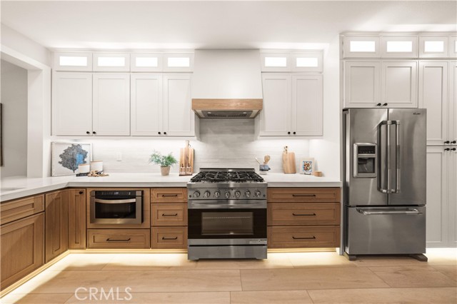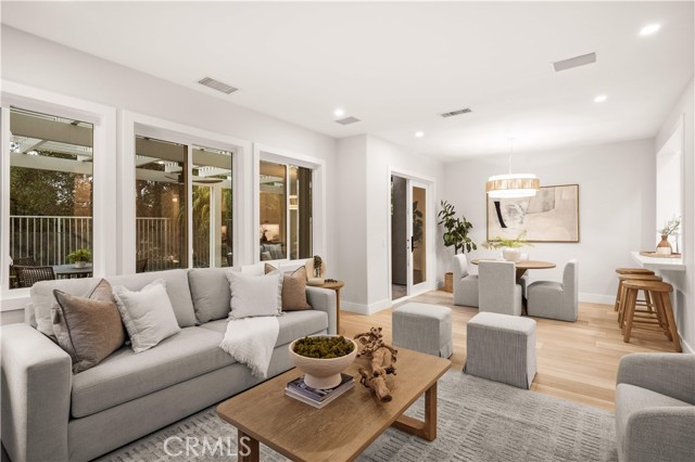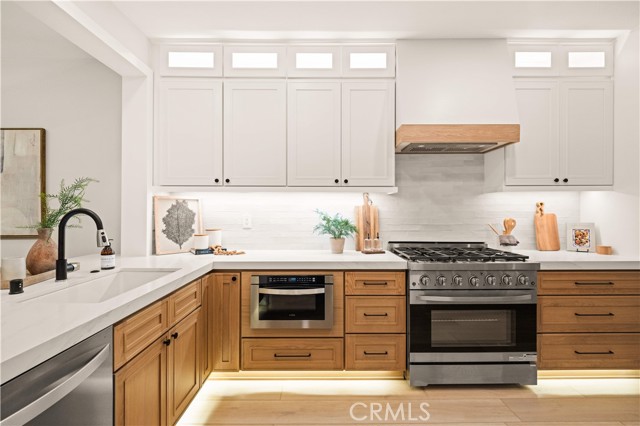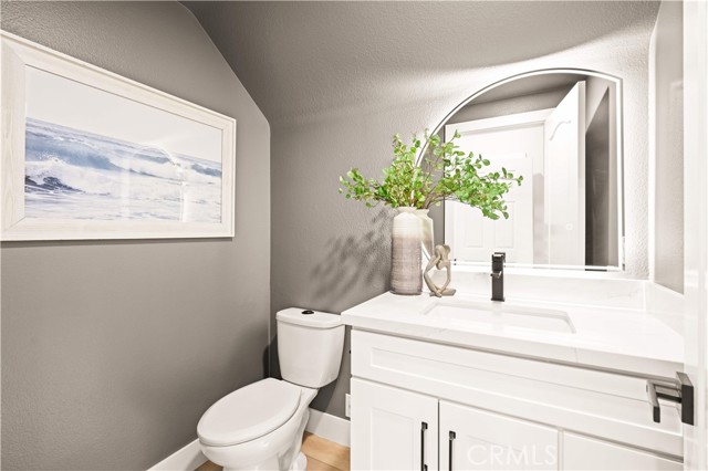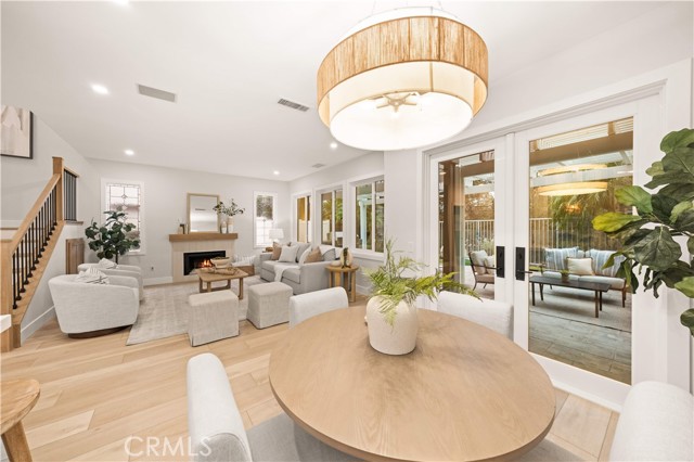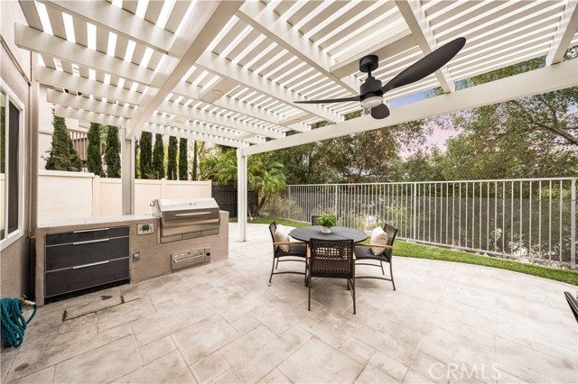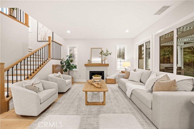 This completely remodeled home offers a seamless blend of modern design, comfort, and functionality. The thoughtfully designed living space is filled with natural light and features new luxury vinyl plank flooring, recessed lighting, and a warm modern fireplace, creating an inviting setting for everyday living and entertaining. The open-concept layout flows effortlessly into a stylish dining area highlighted by designer lighting and indoor-outdoor connectivity, ideal for both casual meals and formal gatherings. The brand new chef's kitchen is a true centerpiece, showcasing quartz countertops, custom cabinetry with under-cabinet lighting, stainless steel appliances, and a generous, well-appointed layout that opens to the main living areas. A chic powder room with contemporary finishes completes the main level. The spacious primary suite serves as a peaceful retreat with abundant natural light and direct access to a private balcony, ideal for morning coffee or evening relaxation. The spa-inspired primary bathroom features a luxurious double vanity with quartz countertops, LED-backlit mirrors, sleek matte black fixtures, and a stunning walk-in shower with designer tile and a frameless glass enclosure. The upper level also includes a versatile office along with two generously sized secondary bedrooms offering ample closet space and natural light. A beautifully upgraded guest bathroom with dual sinks and modern tile finishes completes the upstairs level. The private backyard patio is designed for year-round enjoyment and entertaining. A covered pergola complemented by a built-in BBQ, generous seating and dining areas, and low-maintenance landscaping. Surrounded by mature trees and greenery, the patio offers a serene and private setting, perfect for relaxing, hosting gatherings, or enjoying California indoor-outdoor living at its best. Other features include the whole house pex repiping and the new epoxy garage floors. A short walk to the Coto de Caza Golf & Racquet Club with golf, racquetball, tennis, swimming, spa and restaurant. Beautiful and contemporary home where every day is like a vacation!