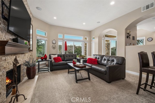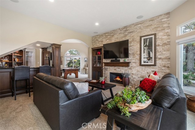 This stunning home is located on the 17th fairway of Coto de Caza's North Course and boasts panoramic views of the golf course and Saddleback Mountains. Beautiful front and back elevation, a private courtyard entrance. This end unit with a 3 car garage is the most sought after floor plan in the Los Verdes development. This warm and inviting home has had over $200,000 in upgrades. The first floor has a spacious dining room with a beautiful custom built in credenza/hutch, office (which can be converted to a 4th bedroom), expanded laundry room, living room, bar, family room with more custom built ins and a stacked stone fireplace. There is also a renovated kitchen with brand new Monogram stainless steel appliances and a breakfast nook with fabulous golf course views. Step out to the patio and you will discover an expansive wraparound deck perfect for entertaining with spectacular views of the historic Coto de Caza windmill, golf course, trees and mountains. Upstairs there is a library, 3 bedrooms, each with their own balcony, master and secondary bathrooms. The master suite has an intimate sitting area with a double-sided stacked stone fireplace, walk in closet, and of course another fantastic view. The bathroom has been completely remodeled with dual sinks, travertine tiles and a polished quartzite countertop. All of the windows and doors have been completely replaced two years ago. The garage has an expanded attic area that can store over a hundred boxes. Within the prestigious guard gated private community of Coto de Caza are miles of horse and walking trails, sports parks, children's play areas and an equestrian center. There is also the renowned Coto de Caza Golf and Racquet Club boasting two 18 hole golf courses.