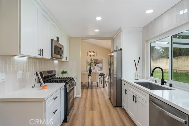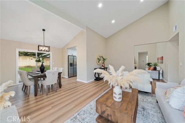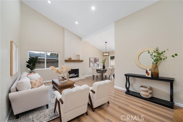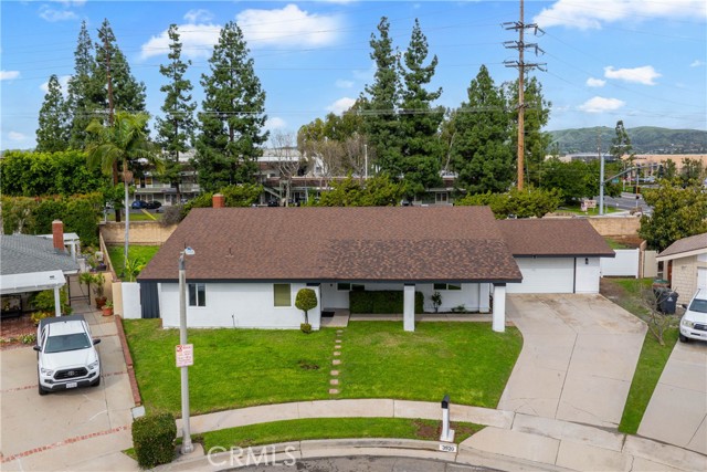 Welcome to 3920 San Marcos Place, a rare single-level home tucked at the end of a cul-de-sac on an oversized pie-shaped lot. With 4 bedrooms, 2 bathrooms, 1,920 square feet of living space, and 10,854 square feet of land, this home combines layout, location, and lot size in a way that's difficult to find in today's market. What immediately stands out are the vaulted ceilings that run throughout the kitchen, living room, dining room, family room, and primary suite, creating an open and airy environment that feels significantly larger than its footprint. Large windows flood the home with natural light, while recessed lighting throughout keeps the space bright and inviting. The kitchen has been tastefully updated with brand new cabinetry, countertops, and backsplash, offering a modern aesthetic that complements the home's warm neutral tones. A centrally positioned kitchen island provides additional prep space and serves as a natural gathering point, while a dedicated pantry adds valuable storage and everyday practicality. Both bathrooms have been refreshed with new tile and updated vanities, giving the next homeowner peace of mind with meaningful upgrades already completed. What truly separates this property is the lot. Positioned at the end of the cul-de-sac, the unique pie-shaped configuration creates a massive backyard with depth and width that most track homes simply cannot offer. Whether you're envisioning a pool, outdoor kitchen, expanded entertaining area, or future ADU potential, the canvas is already there. The attached two-car garage offers direct access into the home for everyday convenience. All four bedrooms are located on a single level, making the floor plan ideal for families, downsizers seeking single-story living, or anyone looking to avoid stairs long term. Zoned to the highly regarded Fullerton Union High School District and just minutes from Downtown Brea, Brea Mall, Arovista Park, and the 57 freeway, the location provides connivence and proximity to entertainment and recreational activities. With single-story homes on oversized cul-de-sac lots becoming increasingly difficult to find, 3920 San Marcos Place presents a unique opportunity to secure space, flexibility, and long-term upside all in one. Make sure to check it out before it's too late.