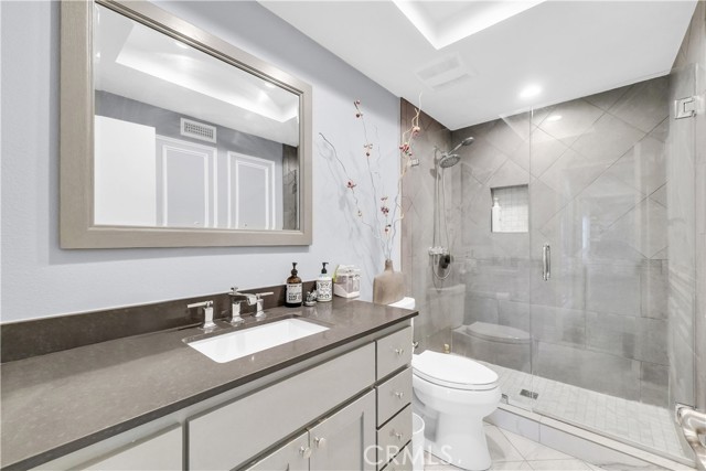 Welcome to this stunning two-story family home in the heart of the highly desired Westmont area of Anaheim. With upgrades and elegant finishes throughout , this turnkey property perfectly blends comfort, luxury, and functionality just ready for you to move right in and fall in love. Step into the formal entry leading to a sunken living room with a marble fireplace, open beam ceiling, and formal dining area overlooking the sparkling pool and spa. The large kitchen features granite counters, wet bar, built-in microwave, double gas ovens, 5-burner gas stove, and dishwasher/trash compactor ideal for any home chef and perfect for entertaining guests. Downstairs includes a bedroom/office with a half bath, while upstairs boasts a grand master suite with double-door entry. balcony, double sinks, separate shower and tub, and access to a 3/4 bath conveniently close to the pool. There are two additional bedrooms, a bonus/media room large enough for a pool table or home theater, and updated full baths with Carrara-honed porcelain and hardwood laminate flooring. Enjoy dual-zone A/C, whole-home, water conditioning and softener system, and smart remote temperature control via Wi-Fi for modern living comfort. Outside, relax or entertain with a large covered patio, built-in double barbecue, and cozy firepit, all surrounded by beautiful landscaped gardens, roses, and topiary trees. The home also offers an attached three car garage with direct access and laundry area, and it's located just minutes from the 5, 91, 22, and 57 freeways, making commutes easy and convenient plus it's close to the happiest place on Earth! Additional highlights: Beautiful crystal chandelier and grand staircase Spacious layout for family living and entertaining Beautiful Crystal Chandelier and beautiful Staircase. Solar system ******** LOAN IS ASSUMABLE AT 2.5% FIX RATE WITH 27 YEARS LEFT.....Principal $733,000.00 ******** Buyers to confirm Sq. Ft.