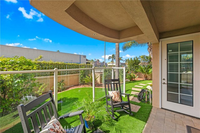 Seek and you shall find! This Mediterranean-style condo at Villa Milano in Huntington Beach. Situated on a prime corner across from the Meadowlark Shopping Center, this approximately 1,686 sq. ft. single-level, ground-floor home offers a blend of luxury and convenience. The property features two bedrooms, two bathrooms, and a den within an open layout. Recent updates include new flooring, new doors, fresh paint, and central A/C. The living room's high ceilings and a new double-pane window in the den maximize natural light. The spacious master suite includes a large walk-in closet and an upgraded door providing access to a private, recently relandscaped wrap-around patio. The dining room also offers patio access, through another new door, with ample space for an outdoor BBQ kitchen. Additionally, the building provides excellent accessibility with a handicap ramp from the sidewalk. Residents of Villa Milano have access to premium amenities, including a pool, spa, and BBQ area. This property is ideally located just minutes from Bolsa Chica State Beach, Huntington Harbour, and the Meadowlark Golf Course. You'll realize why this small complex is so special.