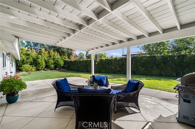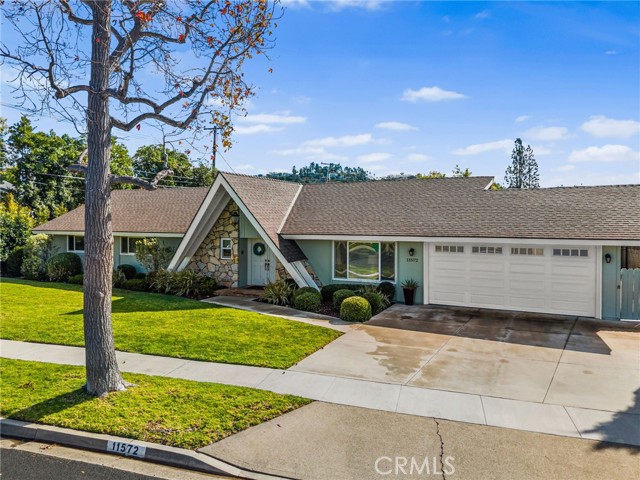 Welcome home to 11572 Suburnas Way, a beautifully updated, move-in-ready, single-story home located in a very desirable North Tustin neighborhood known for tree-lined streets, sidewalks, and a welcoming neighborhood feel. Set on a generous 10,197 square foot flat lot, this 4-bedroom, 2-bath home offers bright, open living spaces filled with natural light, including a large picture window that anchors the living room just off the entry. Fresh interior paint and updated LED recessed lighting throughout create a crisp, inviting ambiance, while warm wood floors add timeless character across the main living areas and soft carpet provides comfort in the bedrooms. The updated kitchen is designed for both style and function with custom cabinetry, expansive granite countertops, stainless steel appliances, and an easy flow into the adjacent dining room — ideal for everyday living and entertaining. A cozy fireplace warms the great room, and patio doors from the dining and great rooms open to a lush grassy backyard with a spacious covered patio, perfect for outdoor dining, play, or relaxing evenings at home. Additional highlights include an indoor laundry room and an excellent location served by top Tustin schools: Red Hill Elementary, Hewes Middle School, and Foothill High School — an exceptional opportunity to enjoy comfortable, connected North Tustin living.