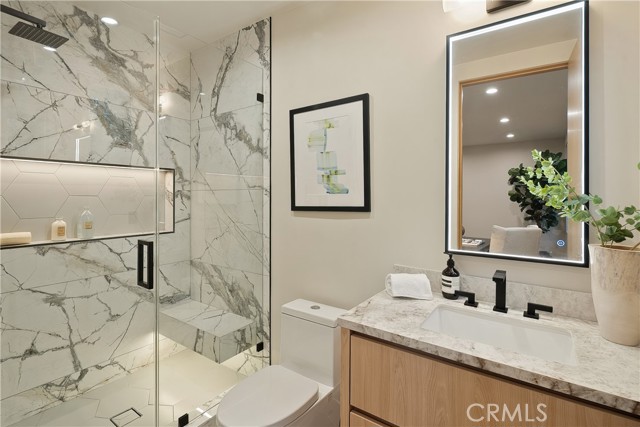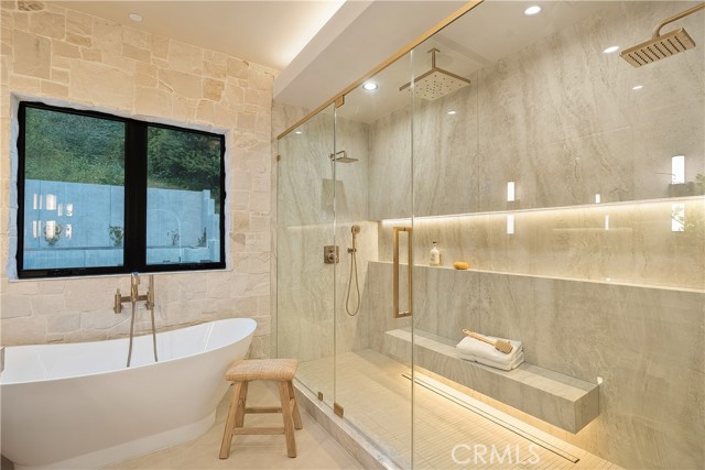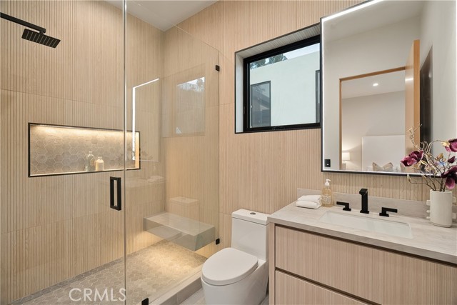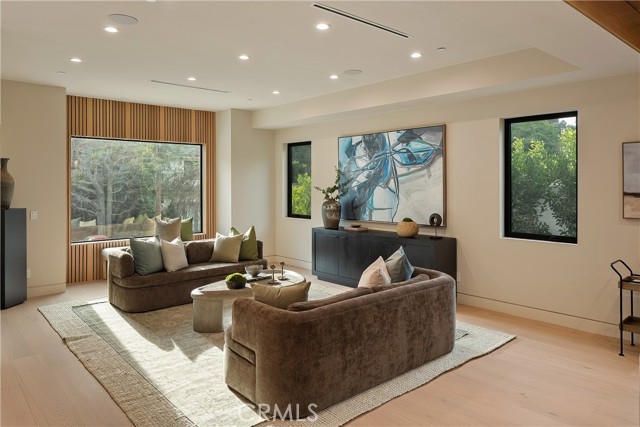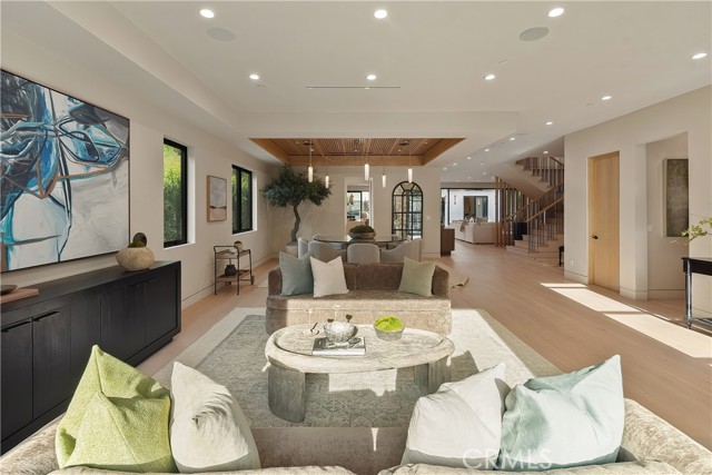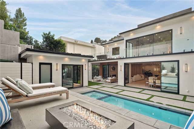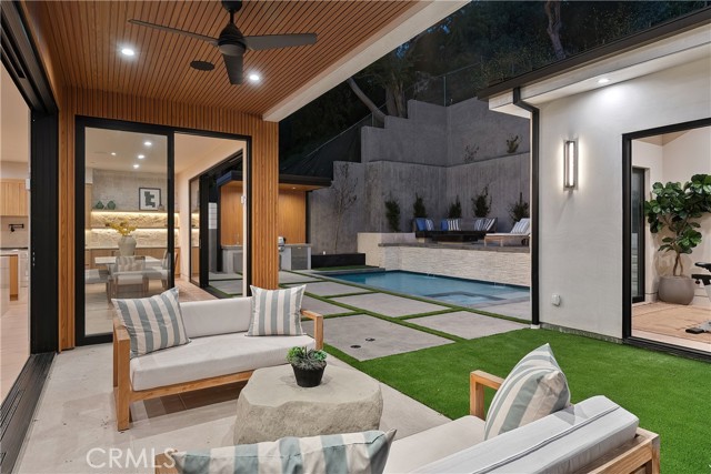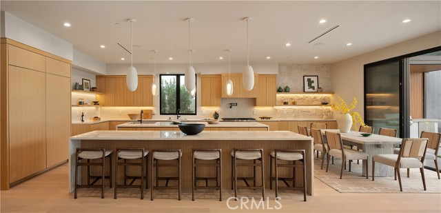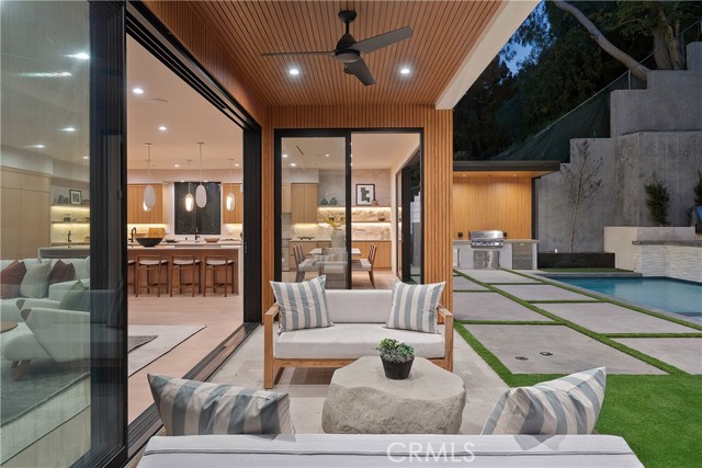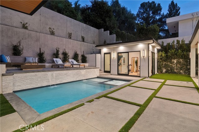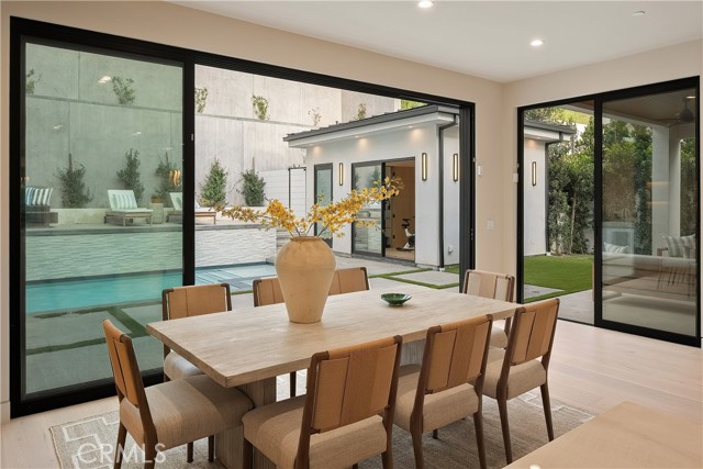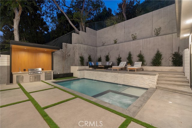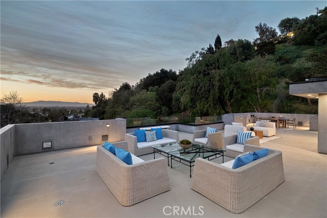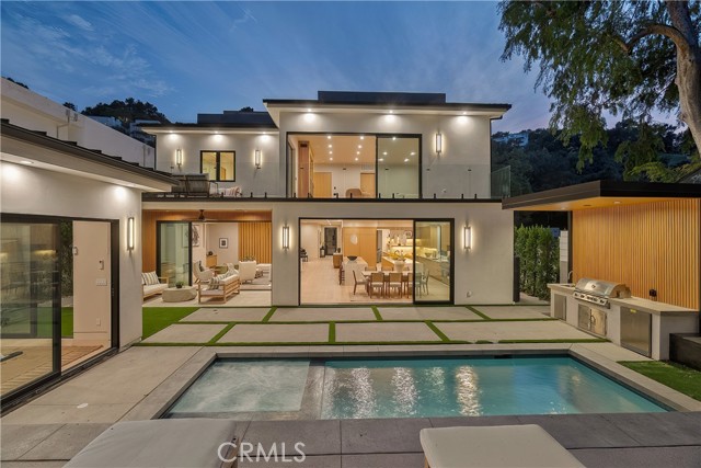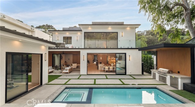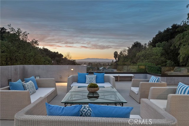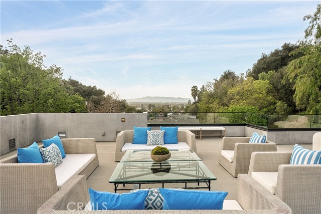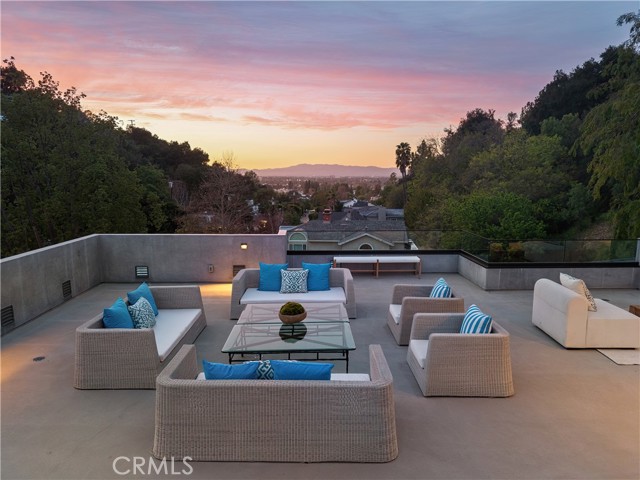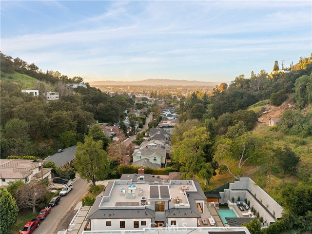 Tucked away on a quiet cul-de-sac in the hills of Studio City, this newly constructed estate boasts a detached guest house and expansive rooftop patio with dramatic views of the Valley. Designed for modern living, the bright and airy open-concept floor plan is accentuated by lofty ceilings and wide-plank white oak floors that flow seamlessly throughout. At the heart of the home, a chef's kitchen impresses with top-of-the-line Thermador appliances, two oversized waterfall islands, a sun drenched breakfast nook and butler's pantry complemented by a separate walk-in pantry. The adjoining family room is flooded with natural light from the oversized sliding glass doors that open to create a seamless indoor-outdoor living experience. Designed for year-round entertaining, the backyard feels like a private resort. The space is highlighted by a sparkling pool and spa, fully equipped outdoor kitchen and covered lounge area. Completing the main level is a spacious formal living and dining room, ensuite bedroom, chic powder bathroom and direct access to the two-car garage. Upstairs, there's a dedicated laundry room and five generously sized ensuite bedrooms, including an expansive primary suite that features a private balcony, dual walk-in closets and a sumptuous bathroom, complete with a soaking tub, oversized rainfall shower, double vanity and smart toilet. Crowning the residence is a 1,700+ sq. ft. rooftop patio with its own outdoor kitchen and views that will take your breath away. A detached guest house with a full bathroom offers a versatile space perfect for guests, multigenerational living, a home office, gym or studio. Additional features include a state-of-the-art smart home and security system, built-in speakers, smooth Venetian plaster walls and extensive custom woodwork. This prime South of the Boulevard location is within the coveted Dixie Canyon School District, walking distance from Harvard-Westlake and the Sportsman's Lodge. Residents also enjoy easy access to Fryman Canyon's hiking trails, trendy restaurants, boutique shops and so much more.