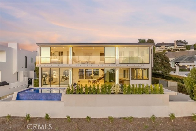 Experience coastal living at its finest in the prestigious, guard-gated community of Harbor Ridge. This new 8,000-square-foot trophy home redefines luxury with an open-concept floor plan and one-of-a-kind details. Unobstructed panoramic ocean views stretch from Newport Harbor to the Palos Verdes peninsula, offering Catalina sunsets and city lights. This modern masterpiece is the perfect atmosphere for family and entertaining, offering five bedrooms and seven bathrooms. Every space is generous in size and quality. All windows and exterior doors are made by Fleetwood, and all of the interior doors are works of art, imported from Italy. European white oak flooring is throughout the house. The home is furnished by Roche Bobois, Cantoni, and Natuzzi. The main level boasts floor-to-ceiling windows and doors, a large foyer with a freestanding curved staircase, living room, fireplace with a 100-inch TV, kitchen, dining room, guest bath, and bedroom/office. Seamless indoor-outdoor transitions lead you to an infinity-tile pool, hot tub, and fire pit. The massive kitchen includes a 17-foot-long island that seats seven, imported cabinets from Germany, and a large, separate pantry. Other features include two dishwashers, two sinks, Kallista faucets, and Miele and Gaggenau appliances. The upper floor offers the master bedroom, two suites, laundry room, and a TV room. The master bedroom is 22 ft. x 22 ft. and features 21-foot glass sliders with ocean views and city lights. The master closet will leave anyone in awe at its size and quality. The master bathroom includes marble slabs for dual showers and marble flooring, all imported from Italy. A freestanding soaking tub and a steam bath complete the space. The lower level features a large family room with an 85-inch TV and a kitchenette with a 12-foot-long island. It also includes a wine cellar, bedroom, gym, and a large laundry room. Trimless lighting throughout provides a minimalist design feel. There are two home theaters with dual subwoofers. All of the 32 speakers and subwoofers in the house are Monitor Audio. The control system is the latest Crestron. There are seven high-end TVs throughout the house and five 4k security cameras. WiFi is throughout. The eight-unit HVAC system features Mitsubishi and Trane equipment. The three-car garage is extra-wide with 12 and 13-foot doors.
