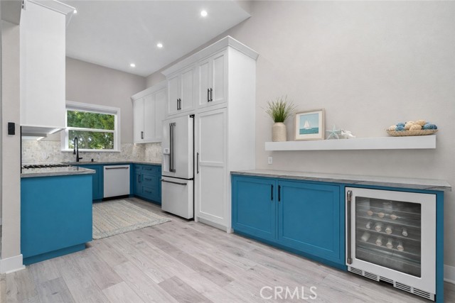 Welcome to 4482 Shorebird Drive — a luxury-remodeled Huntington Harbour condo offering modern coastal living in one of the area's most desirable communities. This beautifully reimagined 2-bedroom, 2-bath home has been upgraded top-to-bottom with high-end finishes and effortless beach-style design. Located just a 10-minute bike ride to Huntington Beach, you're moments from Davenport Beach, Humboldt Island beaches, Harbour View School, and the nearby Trader Joe's shopping center — an unbeatable Harbour location. Inside, soaring vaulted ceilings, engineered hardwood flooring, and all-new windows and doors (2024) create an airy, light-filled living space. The chef's kitchen features GE Cafe smart appliances (2022) — Bluetooth and app-enabled — including a gas range, double oven, refrigerator, wine fridge, and dishwasher. Two full slabs of Brazilian Quartzite (Florida Wave) pair with custom soft-close cabinetry for a sleek, luxury finish. The living room includes an electric fireplace and motorized blinds, while the primary suite offers heated bathroom floors, a cedar-lined custom closet, and a spa-like shower with rain, wall, and handheld heads. Additional upgrades include a Nest HVAC system (2021), new stair rails, new insulation in all bathrooms, and attic access with fan and ladder. BONUS VALUE: There are two additional rooms on the bottom level that are NOT included in the square footage — ideal for a home office, workout room, storage, art studio, or guest overflow. This rare extra space adds incredible functionality and flexibility. This private, gated 21-unit community offers resort-style amenities including a pool, spa, clubhouse, and gated dog park. You'll also enjoy two private garage spaces with epoxy floors, laundry hookups, and enclosed systems for a clean, finished feel. Homes in this community rarely come on the market — don't miss this turnkey Huntington Harbour coastal retreat with bonus space and luxury upgrades throughout. Let this be your next chapter in Surf City living.