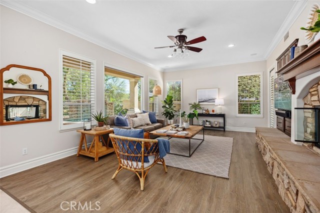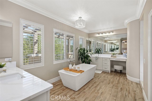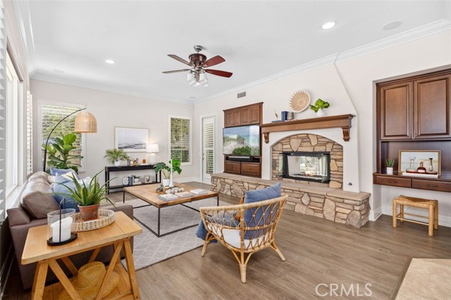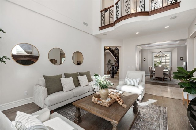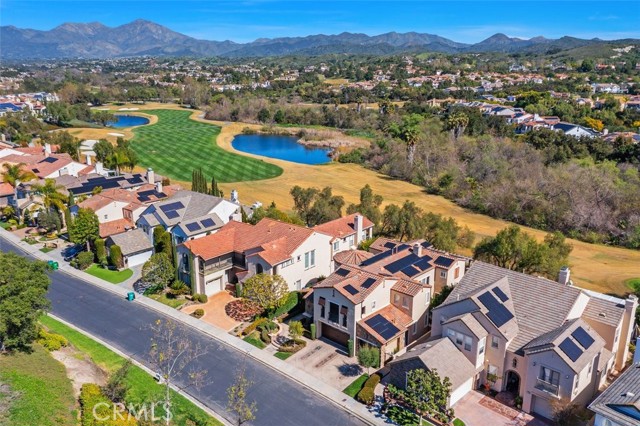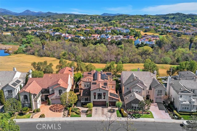 Introducing 24 Water Lily Way, an extraordinary 4 bedroom, 5 bath, 2 office estate in Southern Hills Encore within the prestigious guard-gated community of Coto de Caza. Golf course adjacent this residence embodies the elevated lifestyle of one of Orange County's most coveted enclaves. A private courtyard and custom arched glass entry set the tone for the grandeur within - soaring ceilings, a sweeping circular staircase, timeless travertine, luxury vinyl, crown molding, cased windows and gorgeous shutters. Owned solar, PEX repiped, a new downstairs AC unit and newer water heater provide modern peace of mind behind the home's refined elegance. The formal dining room adorned with a striking coffered ceiling crowns cherished celebrations, while the formal living room showcases a majestic fireplace, lofty double-height ceiling and opens to a private courtyard. At the heart of the home, the expansive family room with warm wood built-ins and fireplace opens to a sunlit breakfast nook and chef's kitchen — all framed with windows capturing backyard and championship golf course views. Here, entertaining becomes an art form. Set against the exclusive South Course — an 18-hole masterpiece designed by Robert Trent Jones Jr. — the backyard is your private resort: in-ground spa, tranquil water features, built-in bar with bbq, sink & cooler, custom wood burning fireplace and multiple hosting areas ready for unforgettable gatherings. Designed for both grand entertaining and life's evolving chapters, the floorplan offers exceptional versatility with a main-level bedroom including ensuite remodeled bath. A richly appointed office completes the downstairs. Upstairs, the home unfolds into two private wings connected by a dramatic catwalk. The primary suite, privately positioned in its own east wing, offers breathtaking views, a fireplace retreat, remodeled spa-inspired bath with soaking tub, oversized shower, dual walk-in closets and a view balcony. The west wing features a built-in office and two additional bedrooms with ensuite full baths, one with a covered balcony. The epoxy-finished three-car garage with built-in racks & cabinetry adds polished functionality. Moments from trails, parks, equestrian facilities and the Coto de Caza Golf & Racquet Club, this grand estate is more than a home — it is a legacy property designed for elevated everyday living, inspired entertaining and a lifetime of beautiful memories. Professional videography coming soon.