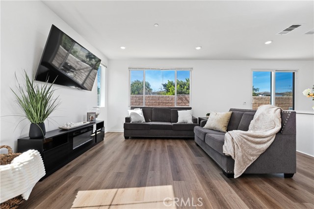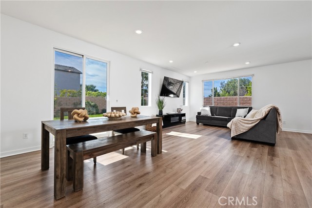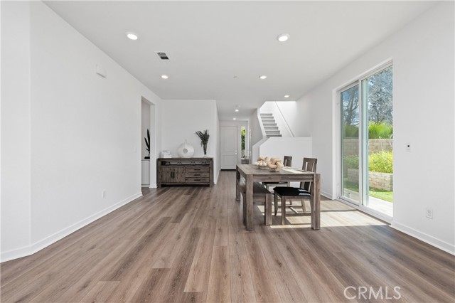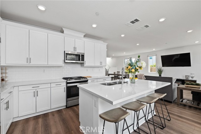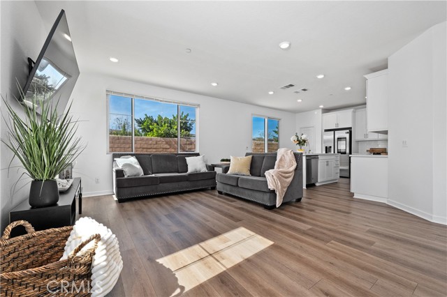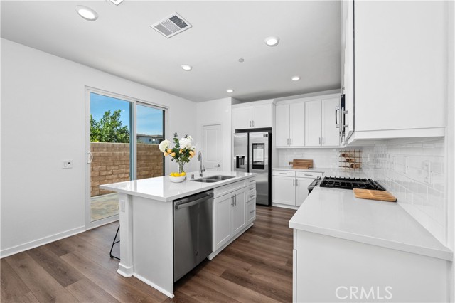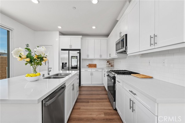 Experience refined modern living in this beautifully designed 2021-built residence, privately situated within an exclusive gated enclave of just nine homes in Northridge. Offering 2,472 square feet of thoughtfully curated living space, this five-bedroom, three-bathroom home blends contemporary style with everyday comfort and versatility. A light-filled open floor plan welcomes you inside, where clean architectural lines and quality finishes create a warm yet sophisticated atmosphere. Beautifully engineered hardwood flooring flows throughout the living room, kitchen, and dining area, creating a seamless and elegant main living space, complemented by newly replaced carpet that adds comfort and freshness in the private spaces. The main level features a desirable downstairs bedroom and full bath, ideal for guests, extended family, or a private office. At the center of the home, the chef-inspired kitchen showcases quartz countertops, a generous workspace, and a full stainless steel appliance package, flowing effortlessly into the dining and living areas — perfectly designed for both intimate evenings and elevated entertaining. Upstairs, four additional bedrooms provide space and privacy, highlighted by a spacious primary suite designed as a true retreat, complete with a walk-in closet and ample room to relax and recharge. Also upstairs you will find a convenient second-floor laundry room which enhances daily functionality while maintaining the home's thoughtful design. Step outside to a spacious private backyard, offering a peaceful setting for outdoor dining, gatherings, or future customization. Low HOA dues help preserve the security, beauty, and cohesion of this boutique gated community. Ideally located minutes from premier shopping, dining, and top-rated schools, this home offers the rare combination of newer construction, privacy, and convenience — delivering a lifestyle defined by comfort, elegance, and ease in one of Northridge's most desirable settings.