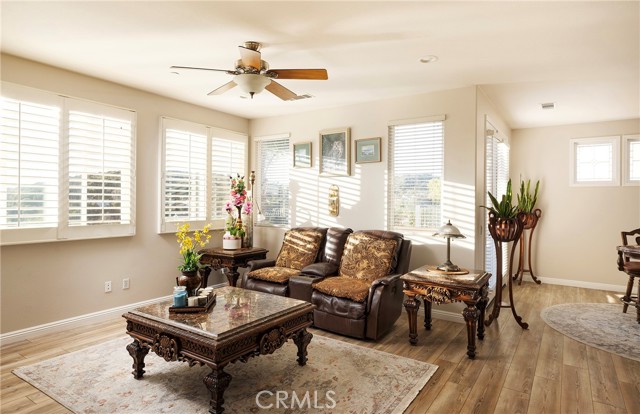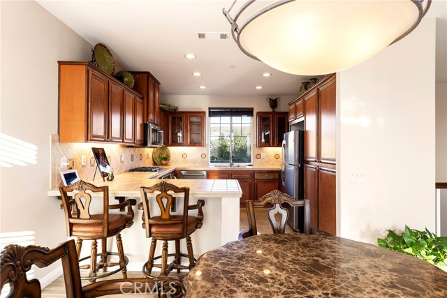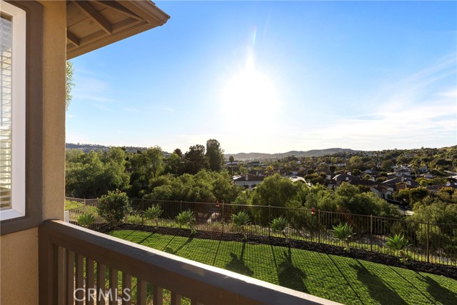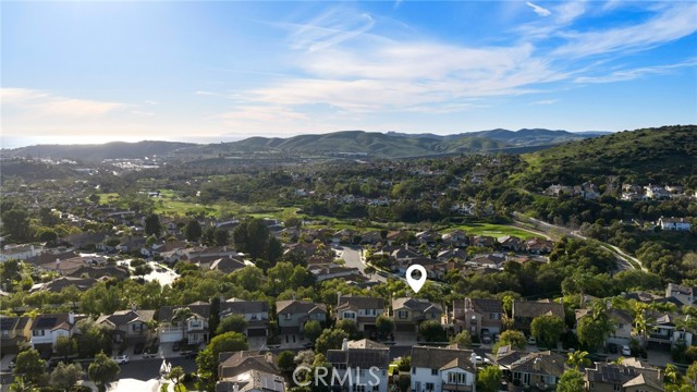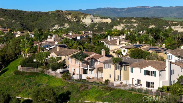 Set on a premium view lot in Farralon Ridge, this Brookfield home offers space, light, and an elevated perspective over Talega's rolling hills, open valley views, and a peek-a-boo glimpse of the Pacific beyond. With no homes directly behind, the setting feels open and private, with wide skies and layered vistas that shift beautifully throughout the day. Designed with a reverse floorplan, the main living areas and primary suite are positioned upstairs to capture natural light and views. The living room features a fireplace and expansive windows, flowing to the dining area and a private balcony — an inviting place to take in morning light or evening skies. The layout offers a comfortable flow for both daily living and gathering. The kitchen opens to the family room and includes wood cabinetry, KitchenAid stainless steel appliances, a five-burner gas cooktop, separate oven, pantry storage, and a breakfast counter for casual dining. Flooring throughout the home includes luxury vinyl tile, with tumbled travertine in the entry and kitchen, and terra cotta tile in the bathrooms and laundry room — each space finished with materials chosen for durability and character. The primary suite offers hillside, valley, and peek-a-boo ocean views, along with a walk-in closet and a spacious bath featuring dual sinks, a separate walk-in shower, and a jetted soaking tub. Two additional bedrooms and flexible living space provide options for guests, remote work, or creative use. Seller upgrades include an updated A/C system, electrical panel, water heater, KitchenAid stainless steel appliances, interior and exterior paint, exterior lighting, Polyaspartic garage flooring, plus more — thoughtful improvements that enhance comfort, efficiency, and everyday function. Outdoors, the backyard includes lawn and patio areas framed by wrought iron fencing to preserve the view. With no rear neighbor, the lot enjoys both openness and privacy, along with generous space to explore the addition of a future pool. Living in Talega means access to community pools, pickleball and tennis courts, parks, playgrounds, clubhouse spaces, miles of scenic trails, and the Talega Golf Club. Award-winning schools, neighborhood shops, dining, and San Clemente's beaches are just minutes away. A well-located home with views, meaningful upgrades, and a layout designed to elevate everyday living.