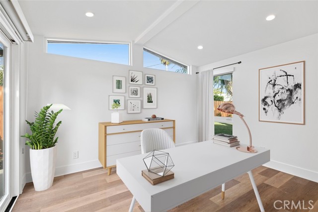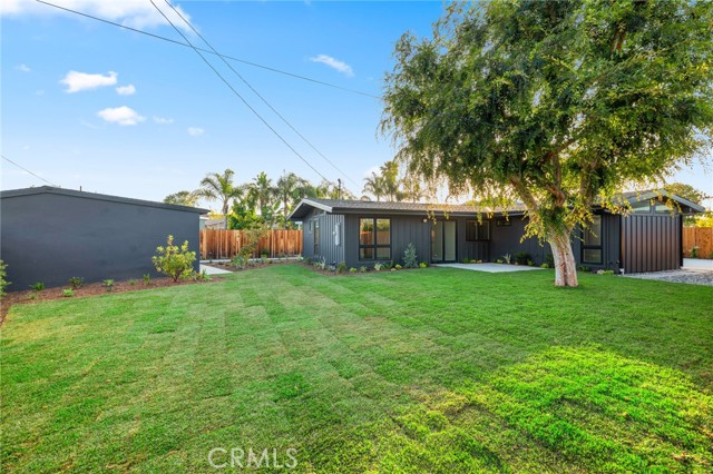 Revel in this remodeled and expanded Cliff May inspired Mid-Century Modern home with true indoor/outdoor Rancho style. The 2022 remodel doubled the livable square footage and left nothing undone, bringing the home up to today's standards while honoring its architectural heritage. Open great room with kitchen, living, and dining, plus 3 bedrooms, 2.5 baths and a laundry room complete the interior. Roof, siding, windows & doors, flooring, electrical, kitchen & baths, AC and furnace, insulation, tankless hot water heater, and landscape/hardscape are all NEW. The home enjoys a low traffic, end of cul-de-sac location and a pie-shaped lot with huge backyard. The lucky owner has room to add a pool and/or ADU. Two outdoor patios beckon you to bask in Eastside Costa Mesa's sun and ocean breezes. A detached 2-car garage is off the alley, along with an additional off street parking spot. The location can't be beat with proximity to schools, parks, beaches, and amazing retail options. Truly a rare architectural gem! *NOTE: Several photos show virtual staging.