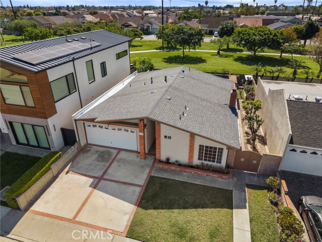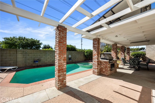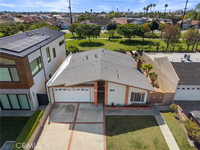 Welcome to this well-maintained three-bedroom, two-bath home in the heart of La Palma. The home features custom oak kitchen cabinets, granite countertops, and a cozy family den adjacent to the kitchen — ideal for everyday living and family gatherings. Recent upgrades include fresh interior and exterior paint, Laminate wood flooring, a new roof, and a fully paid-off solar system. The backyard is an entertainer's dream, offering a pool, jacuzzi, built-in barbecue, and plenty of space for gatherings. All improvements have been completed with permits. Enjoy an impressive variety of mature fruit trees, including golden apple, guava, persimmon, pomegranate, fig, orange, jujube, apricot, and a unique tree with five varieties of citrus fruit. A beautiful park is located directly behind the home, close to schools, shopping centers, Knott's Berry farm and convenient access to the 91 and 5 freeways. Don't miss this unique opportunity to own a home that combines comfort, style, and practicality in a prime location.