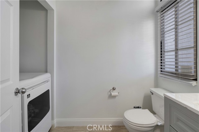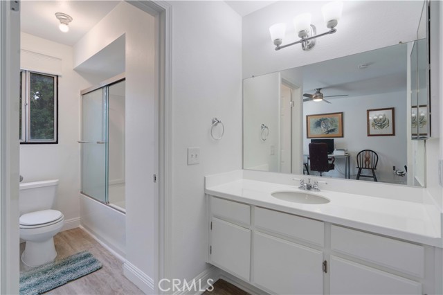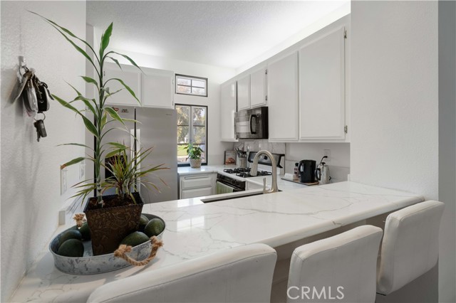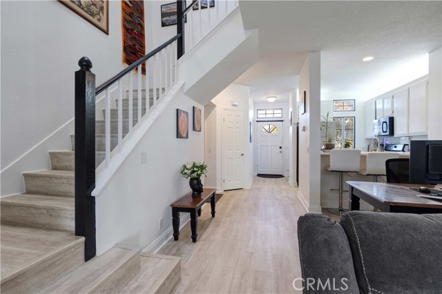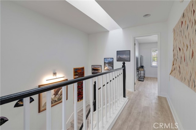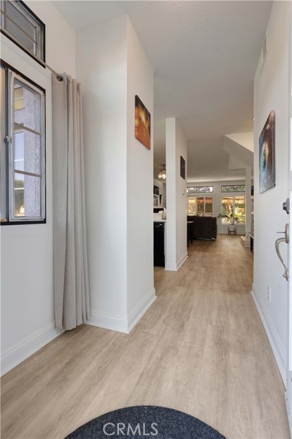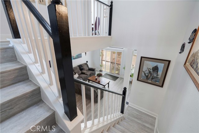 Welcome home to this beautiful residence located in the exclusive gated community of Bridgeport Terrace. This inviting property features two bedrooms, two and a half bathrooms, an attached garage and a host of upgraded amenities. Upon entering, you will be greeted with oak laminate wood flooring that flows effortlessly throughout the open floor plan. The kitchen features quartz countertops, recessed lighting and bar seating, while the adjacent dining area makes for easy entertaining. The spacious living room centers around a gorgeous, custom tile-surround fireplace, all while overlooking the private, serene patio. A convenient guest half-bath is located downstairs, as well as an in unit, side by side laundry space. Head upstairs to find the two primary suites, each offering its own ensuite bath and walk in closet. Additional upgrades include shutters, new paint throughout, custom built ins in the living room and a contemporary staircase marked with espresso handrails and white spindles. Bridgeport Terrace features excellent amenities including a sparkling pool and spa, picnic and BBQ areas and a secure gated entry. HOA dues cover basic cable, trash service, exterior maintenance and well-maintained landscaping. Conveniently located near the 5 freeway, this home is minutes from shopping, dining, entertainment and world-renowned beaches.