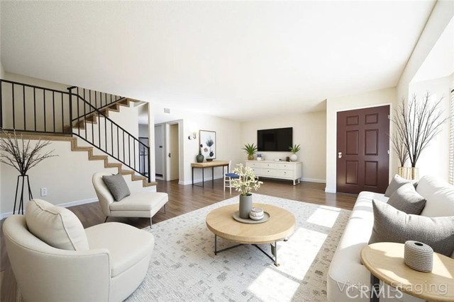 Welcome to popular GLENBROOK DOWNEY 2-story townhome (PUD) in gated community ... updated 3 bed, 2.5 bath unit features BRAND NEW: interior paint throughout including garage & rafters, vinyl plank flooring & carpeting, kitchen with recessed lighting .. all bathrooms with quartz vanity top, mirrors, medicine cabinets, lights & fixtures, toilets ... nice floor plan includes separate living room ... family style kitchen has large breakfast counter open to dining / den area with direct access to private patio and 2-car garage with laundry area ... guest bathroom on main level ... spacious primary suite has vaulted ceiling, double closets, private bathroom with new door for walk-in shower ... two junior bedrooms, full bathroom with shower ... central heating & A/C with new digital thermostat, dual pane windows, newer patio sliding door ... HOA includes community pool, water, trash, common area maintenance ... walking distance to elementary school, local shops & restaurants ... MUST SEE.